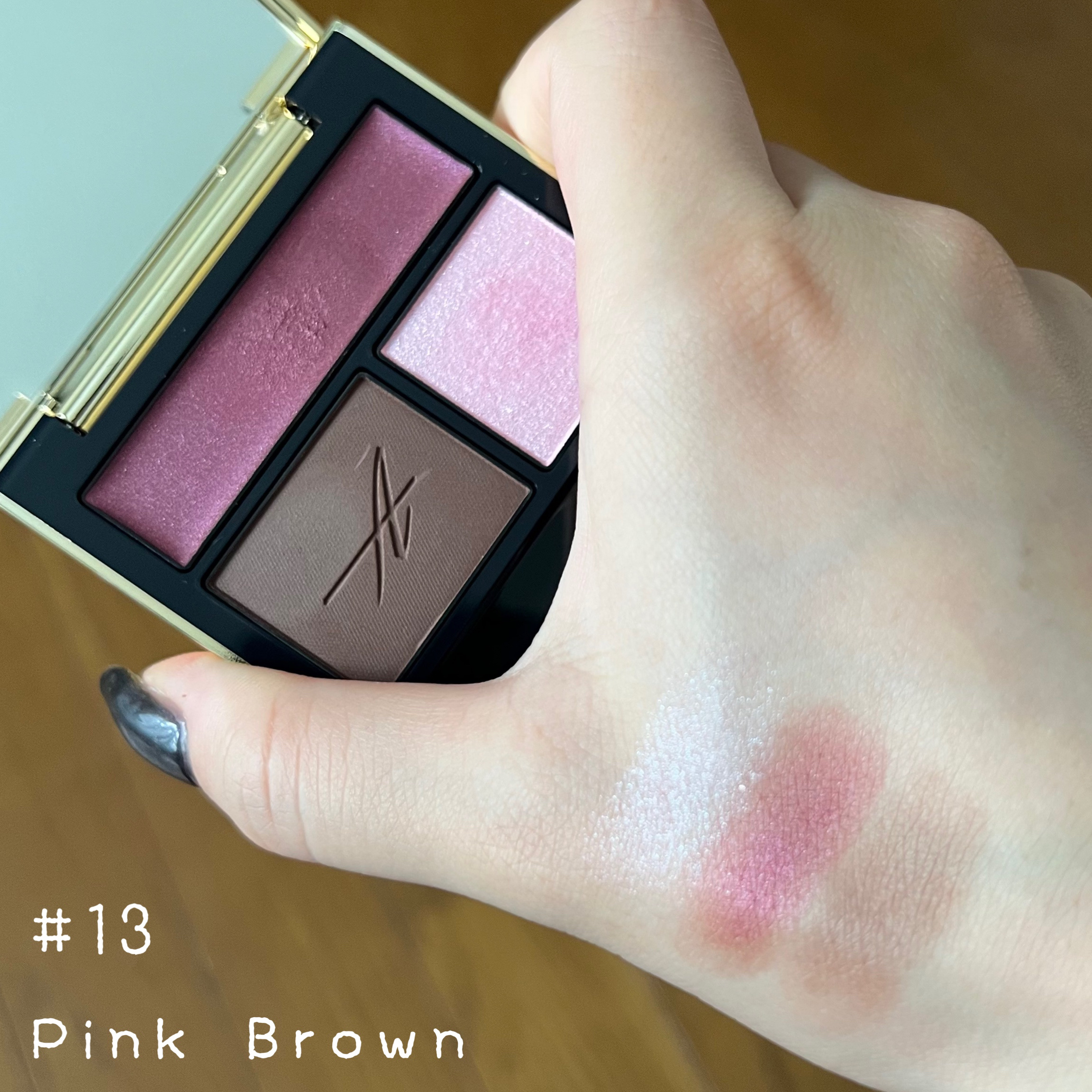 全体に発色強め 甘い香りがするとかしないとか 発色しっかりな赤茶 目の下にかかるようにつけたり アイシャドウとしても◯ ハイライトいらないツヤツヤチーク 発色強いベージュ