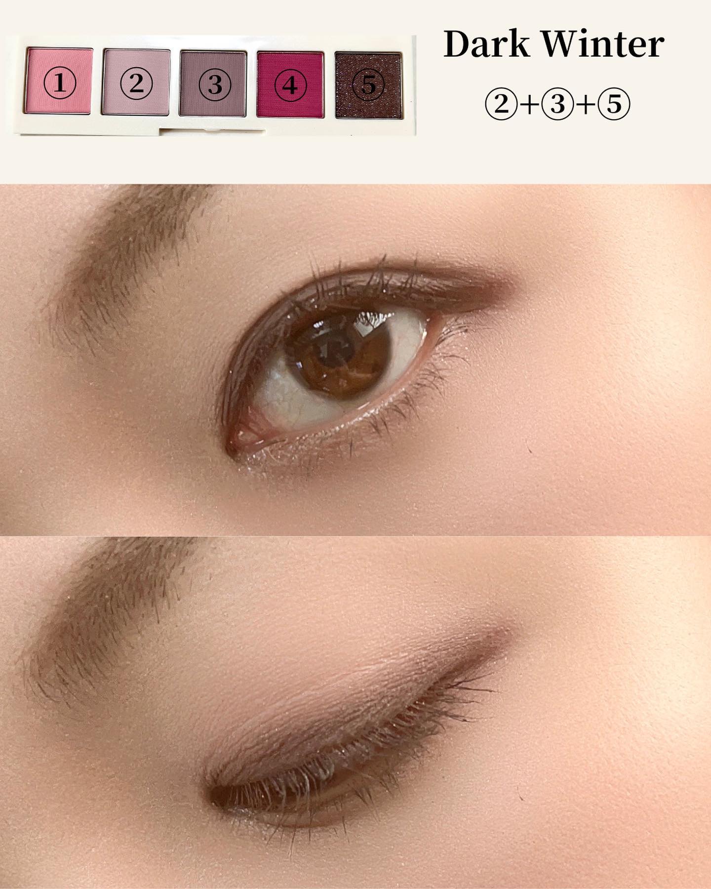 - 捨て色なし!サマー/ウィンターのカラーをそのまま凝縮したクールトン(ブルベ)5色アイシャドウパレット。