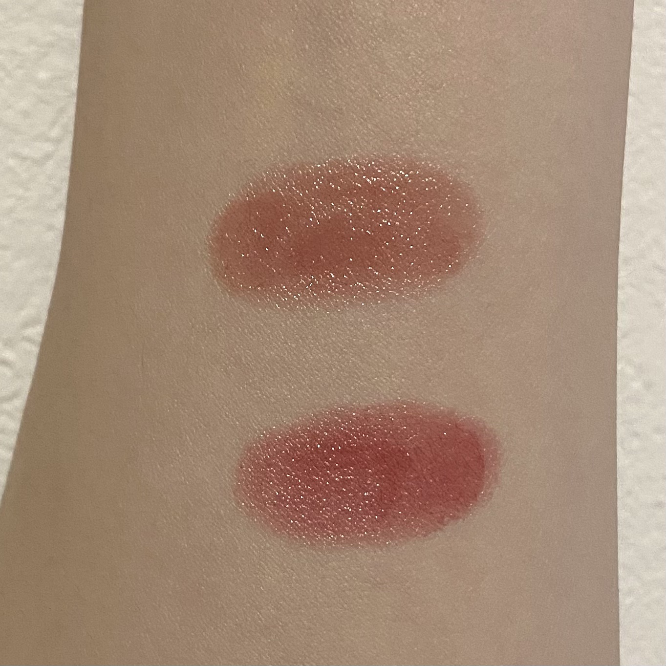 テクスチャはトロっとしていて、すごく伸びがいいです。ラベンダーカラーの補正効果で透明感が増します✨塗ったあとは少しサラッとします。 テクスチャはサラッとしていて、水っぽい感じです。こちらも伸びはいいです。ブルーの補正で若干白くなりますが、コフレドールの方が補正効果があるような気がします。塗ったあとはすこしツヤっとします。