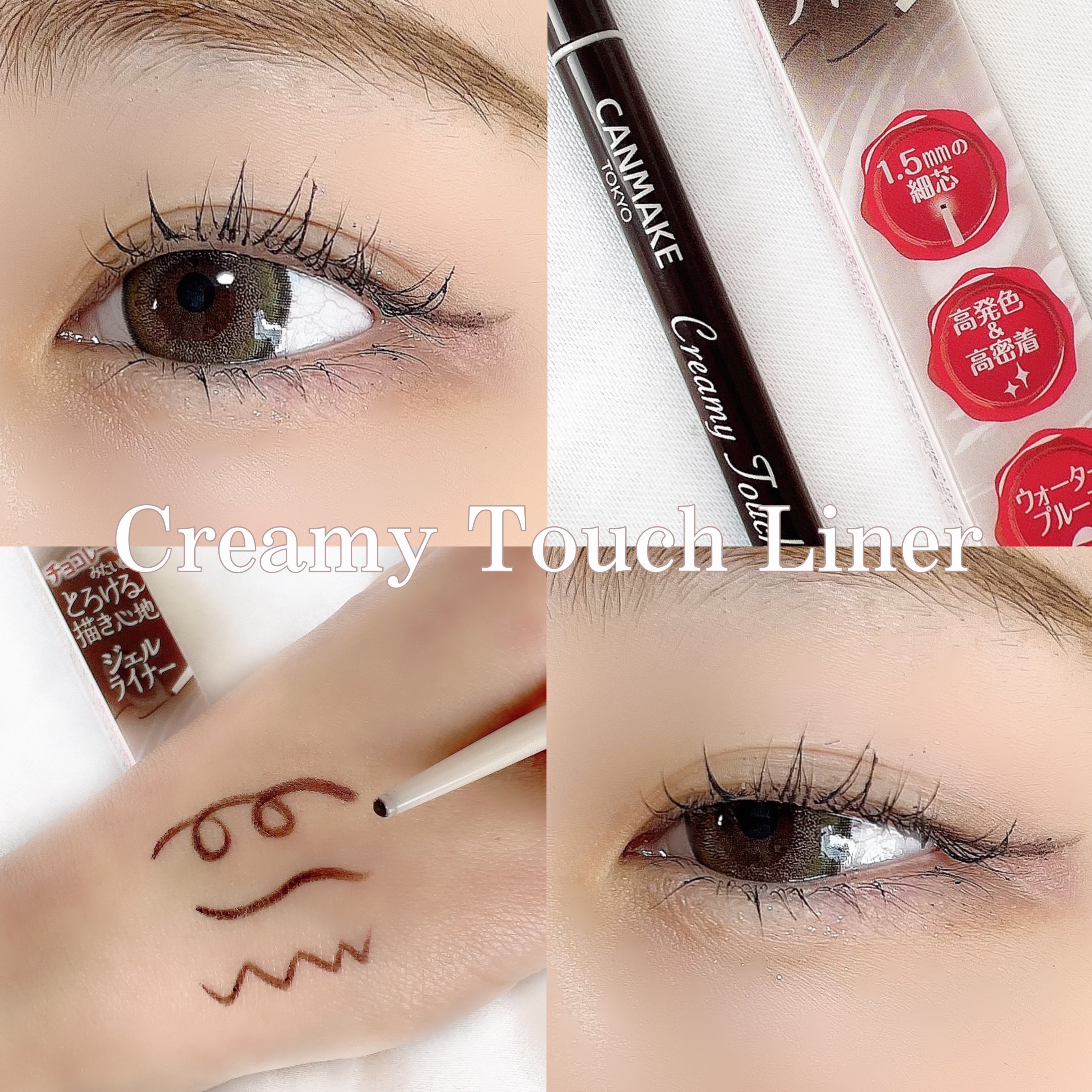 キャンメイクの超人気商品 クリーミータッチライナーを初購入したので紹介いたします! 描き心地の良さにビックリしました😳 するする〜となめらかに描けます! 発色も良くしかも乾くと落ちにくい‼︎ 1.5㎜の超極細芯でまつ毛のすき間も楽に埋めることができます👍