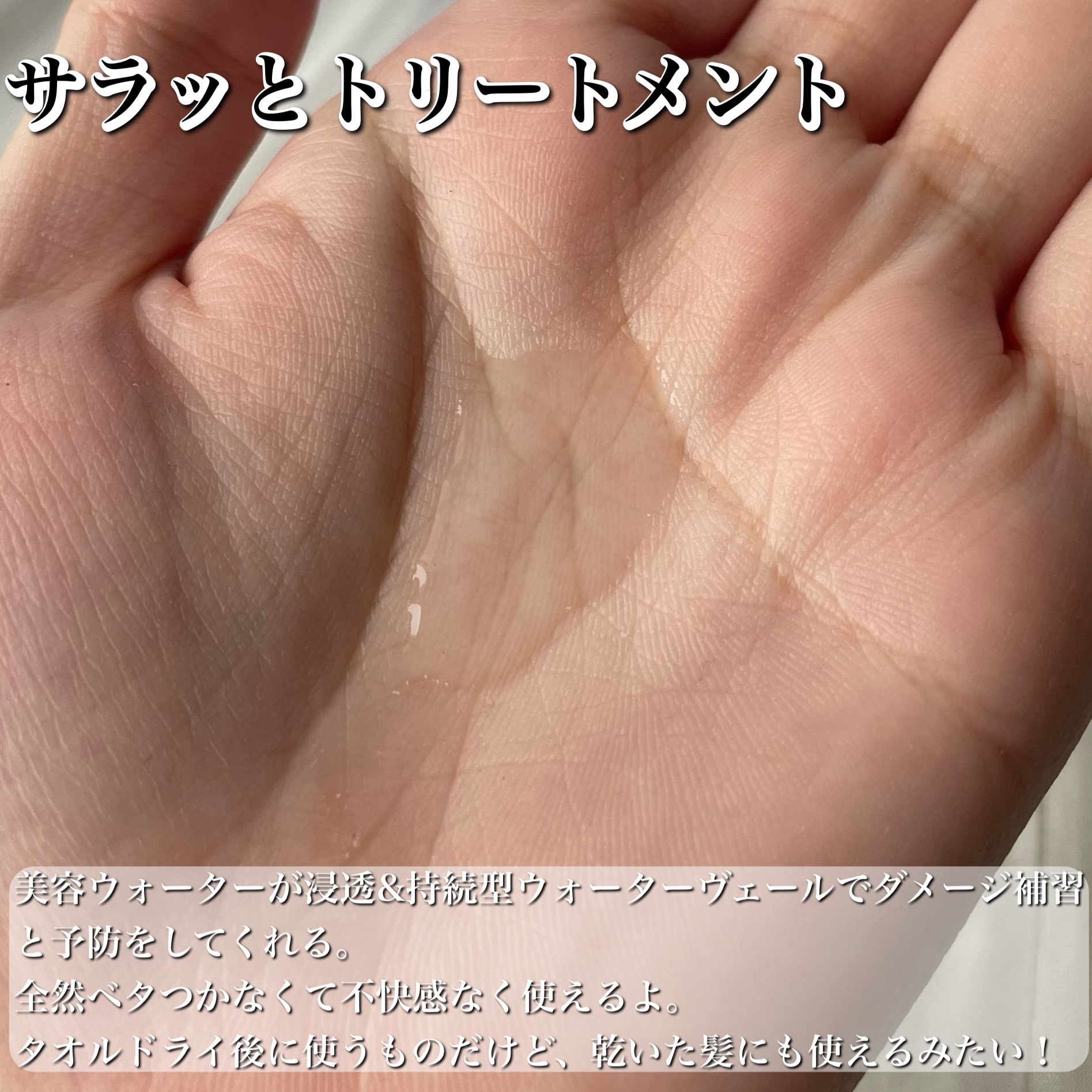 | 乾かすとつるんとした手触りの髪になるのも良き◎ウォーターなので、使用感が軽いところも良いな〜〜と思いました | 詳細を見る | ||