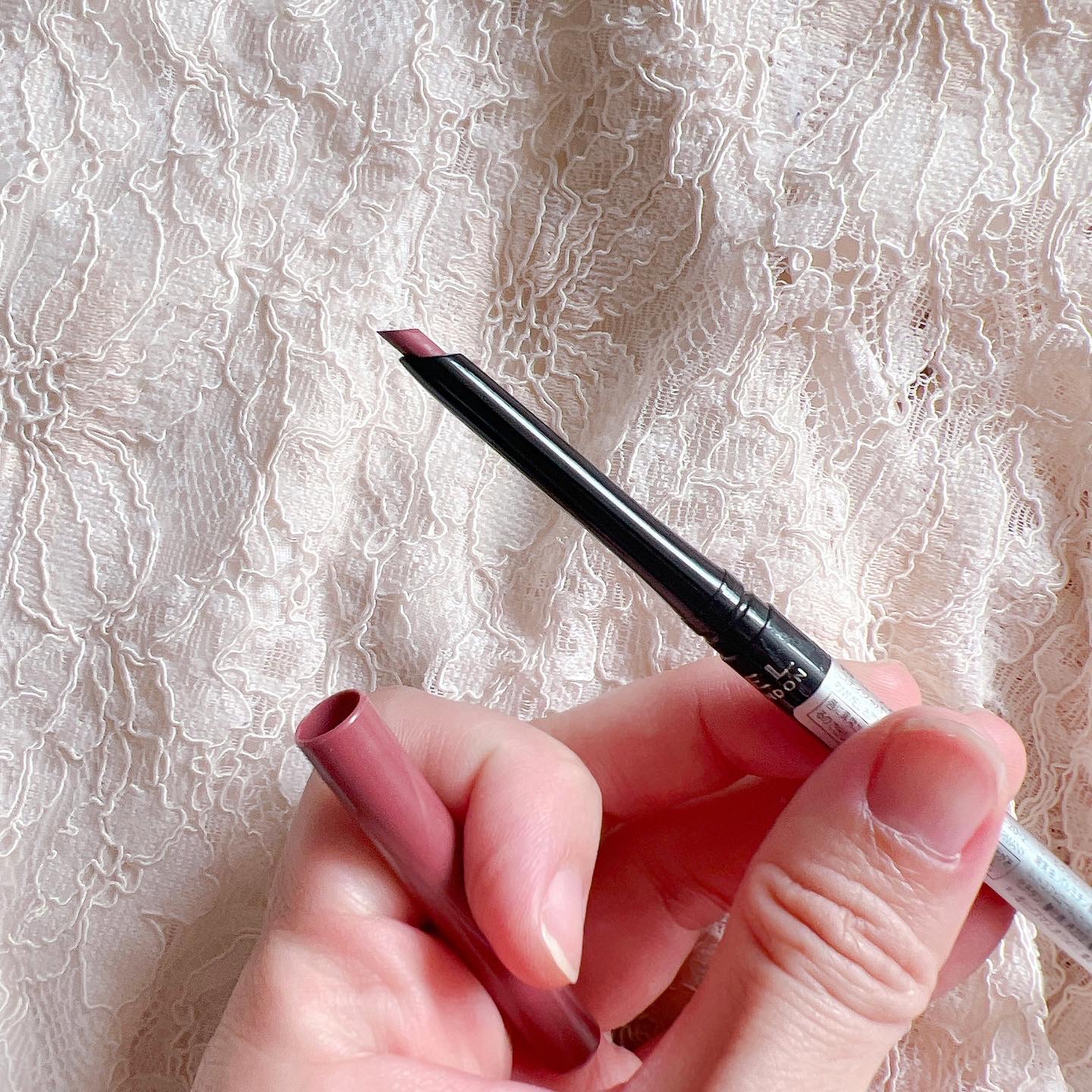 イーストエンドピンクはほんのりプラムのような青みのあるくすみピンク 斜めカットで広範囲に塗れて細めのラインも描ける 軽くティッシュオフしても色移りは少なく擦っても色が残るので色持ちは良い方かな