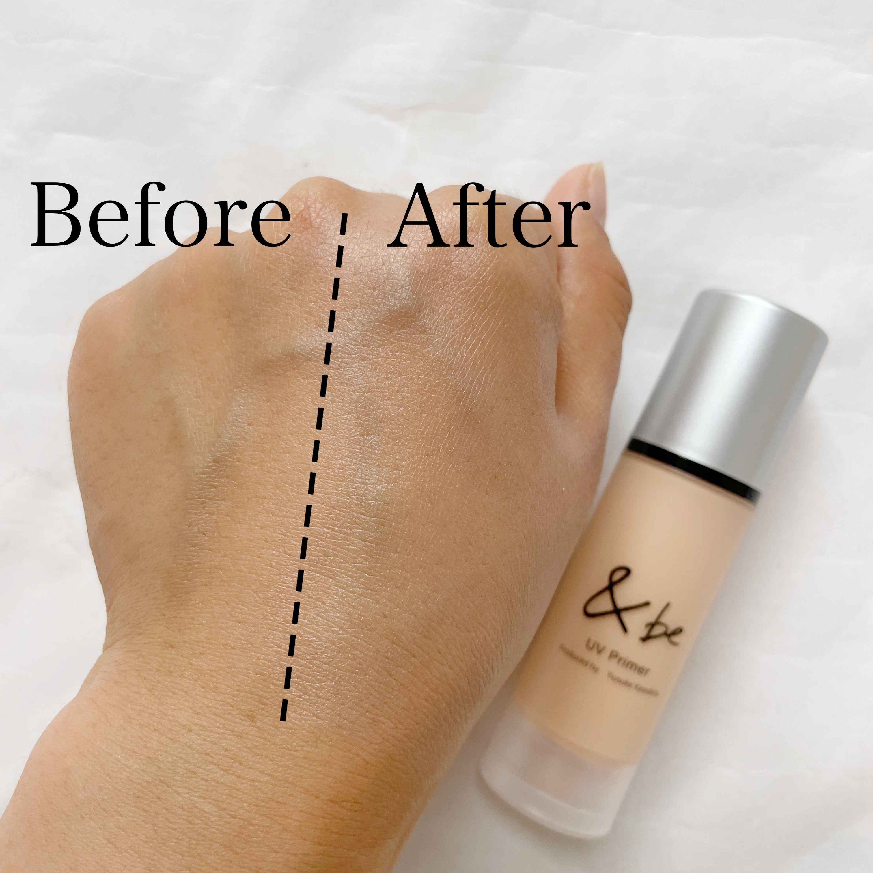 最近ノーファンデをはじめたお友達の肌がすごくキレイで。日焼け止めとか何使ってるのか聞いたらこれだよって教えてくれたので、さっそく私も使い始めました♡ &be(アンドビー)「UVプライマー」下地なんだけど、カバー力が高めでとにかくツヤがキレイ。肌にみずみずしい透明感を与える微細パールが高配合されてるんだそう。 SPF50+・PA++++と高い紫外線カット効果をノンケミカル処方で実現。鉱物油、紫外線吸収剤、石油系界面活性剤、タール系色素、合成香料不使用のフリー処方で、石鹸オフできるのも嬉しいポイント。