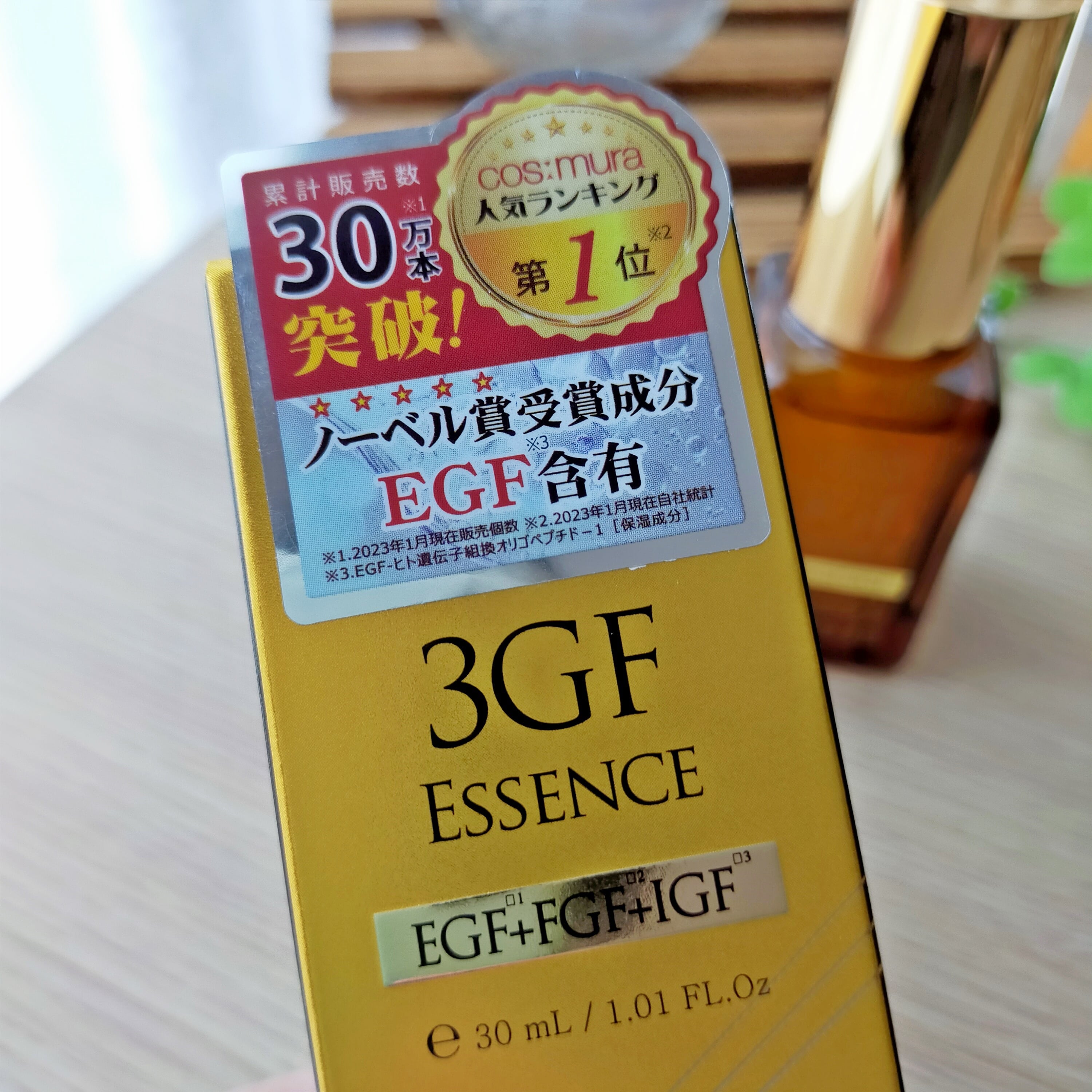 コスムラの3GFエッセンスはエイジングケアの定番とも言える成長因子を3つ(EGF、FGF、IGF)も含有しています。 水溶性美容液で水分補給もバッチリ、しかも刺激が少ないです。 高級感のあるデザインと成長因子3つEGF、FGF、IGFが含まれているとても贅沢な美容液なのでここ最近年齢肌が気になっている私にもすごく使いやすくてとても嬉しいです。