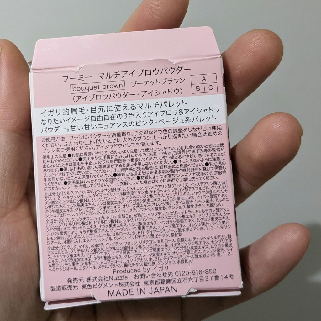 高発色なしっとりめパウダーで、自眉しっかりな私は、これとアイブロウマスカラのみで眉メイクは仕上げてます🙆 チップも付属してるから、旅行の時とかこれ一つでアイシャドウ&アイブロウが済ませられて便利ですね! ブーケットブラウンも気になるので次はそっちにしてみようかな〜