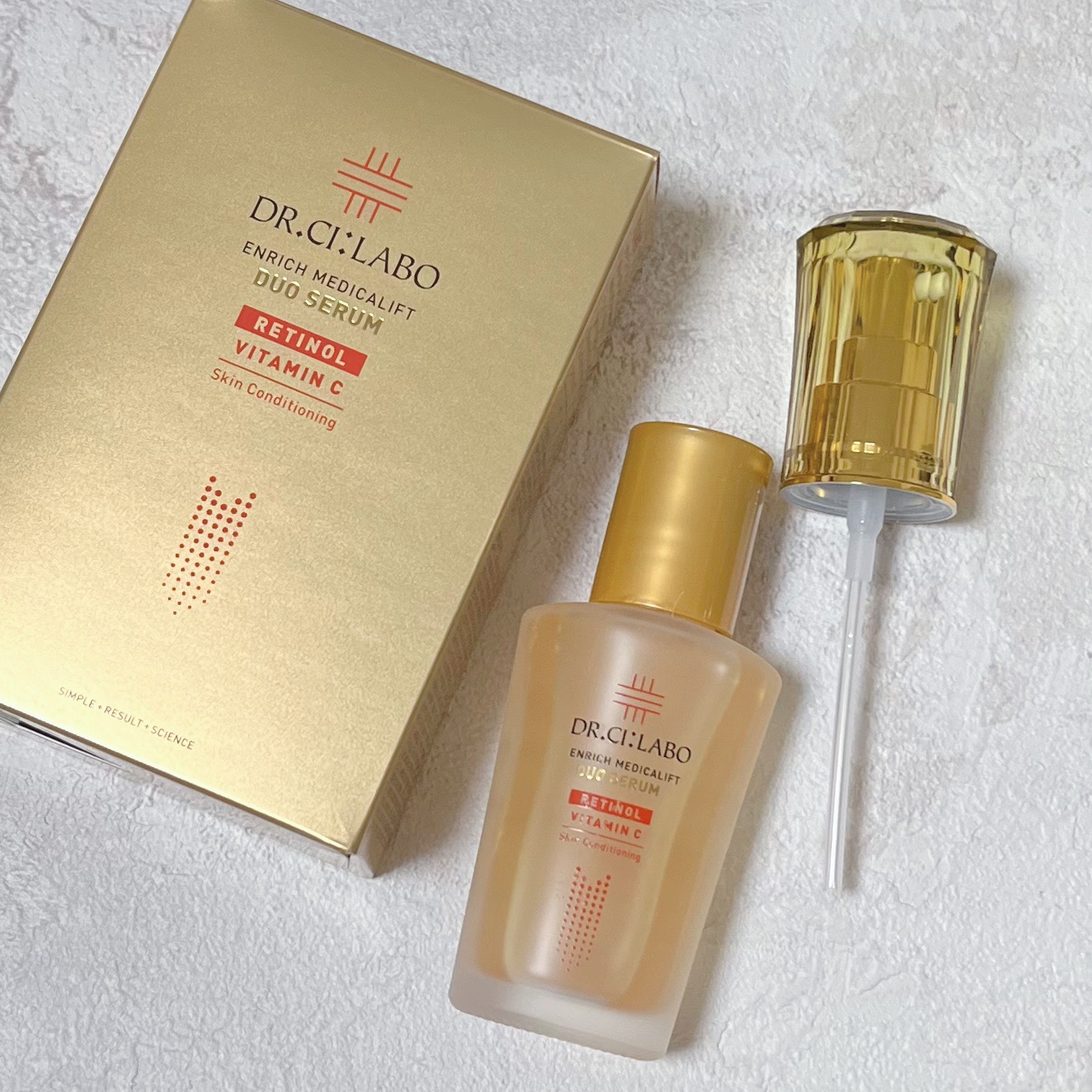 レチノールとビタミンC配合って贅沢すぎない⁈🥺✨ 肌馴染みの良い使用感があってシーラボの中でも1.2を争うぐらいお気に入りのアイテムです テクスチャーはさらっとしていてベタつきは一切感じません