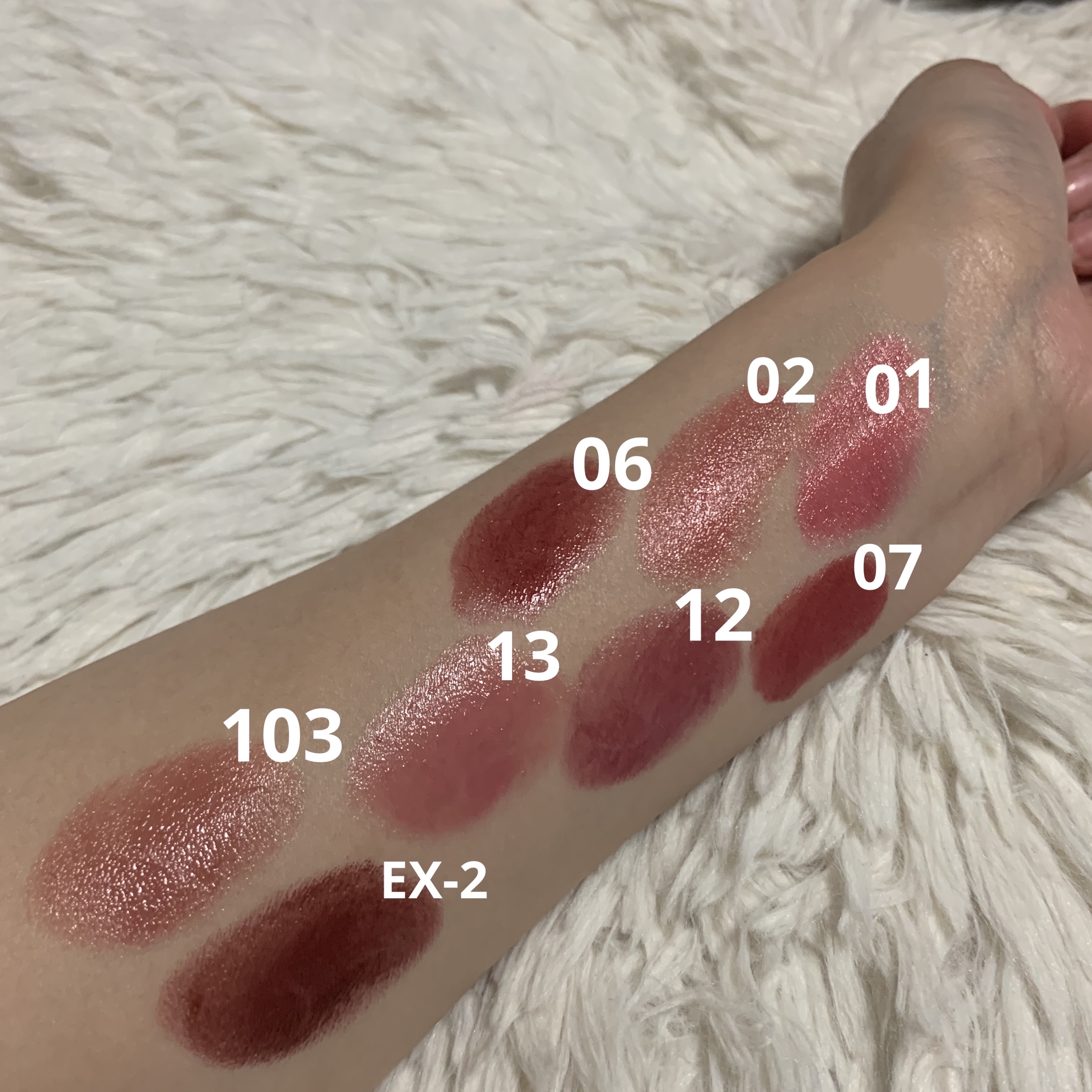 - <01 欲望の塊> テトライソステアリン酸ジペンタエリスリチル、トリ(カプリル酸/カプリン酸)グリセリル、オクチルドデカノール、ラウロイルグルタミン酸ジ(フィトステリル/オクチルドデシル)、ビスアルキル(C16-18)グリセリルウンデシルジメチコン、イソノナン酸イソトリデシル、水添ポリイソブテン、ラウロイルグルタミン酸ジ(オクチルドデシル/フィトステリル/ベヘニル)、パラフィン、合成ワックス、ダイマージリノール酸(フィトステリル/イソステアリル/セチル/ステアリル/ベヘニル)、マイクロクリスタリンワックス、水添マイクロクリスタリンワックス、ヒドロキシステアリン酸エチルヘキシル、トコフェロール、ホホバ種子油、オリーブ果実油、アーモンド油、(エチレン/プロピレン)コポリマー、ポリエチレン、ジメチコン、(+/-)(チタン/酸化チタン)焼結物、マイカ、ラウロイルアスパラギン酸Na、ラウロイルリシン、塩化亜鉛、酸化チタン、酸化鉄、水酸化Al、硫酸Ba、トリイソステアリン酸イソプロピルチタン、酸化スズ、ホウケイ酸(Ca/Al)、合成フルオロフロゴパイト、黄4、黄5、赤104(1)、赤201、赤202 <02 ピンクバナナ> テトライソステアリン酸ジペンタエリスリチル、トリ(カプリル酸/カプリン酸)グリセリル、オクチルドデカノール、ラウロイルグルタミン酸ジ(フィトステリル/オクチルドデシル)、ビスアルキル(C16-18)グリセリルウンデシルジメチコン、イソノナン酸イソトリデシル、水添ポリイソブテン、ラウロイルグルタミン酸ジ(オクチルドデシル/フィトステリル/ベヘニル)、パラフィン、合成ワックス、ダイマージリノール酸(フィトステリル/イソステアリル/セチル/ステアリル/ベヘニル)、マイクロクリスタリンワックス、水添マイクロクリスタリンワックス、ヒドロキシステアリン酸エチルヘキシル、トコフェロール、ホホバ種子油、オリーブ果実油、アーモンド油、(エチレン/プロピレン)コポリマー、ポリエチレン、ジメチコン、(+/-)(チタン/酸化チタン)焼結物、マイカ、ラウロイルアスパラギン酸Na、ラウロイルリシン、塩化亜鉛、酸化チタン、酸化鉄、水酸化Al、硫酸Ba、トリイソステアリン酸イソプロピルチタン、酸化スズ、ホウケイ酸(Ca/Al)、合成フルオロフロゴパイト、黄4、黄5、赤104(1)、赤201、赤202 <03 陽炎> テトライソステアリン酸ジペンタエリスリチル、トリ(カプリル酸/カプリン酸)グリセリル、オクチルドデカノール、ラウロイルグルタミン酸ジ(フィトステリル/オクチルドデシル)、ビスアルキル(C16-18)グリセリルウンデシルジメチコン、イソノナン酸イソトリデシル、水添ポリイソブテン、ラウロイルグルタミン酸ジ(オクチルドデシル/フィトステリル/ベヘニル)、パラフィン、合成ワックス、ダイマージリノール酸(フィトステリル/イソステアリル/セチル/ステアリル/ベヘニル)、マイクロクリスタリンワックス、水添マイクロクリスタリンワックス、ヒドロキシステアリン酸エチルヘキシル、トコフェロール、ホホバ種子油、オリーブ果実油、アーモンド油、(エチレン/プロピレン)コポリマー、ポリエチレン、ジメチコン、(+/-)(チタン/酸化チタン)焼結物、マイカ、ラウロイルアスパラギン酸Na、ラウロイルリシン、塩化亜鉛、酸化チタン、酸化鉄、水酸化Al、硫酸Ba、トリイソステアリン酸イソプロピルチタン、酸化スズ、ホウケイ酸(Ca/Al)、合成フルオロフロゴパイト、黄4、黄5、赤104(1)、赤201、赤202 <04 パンプキンワイン> テトライソステアリン酸ジペンタエリスリチル、トリ(カプリル酸/カプリン酸)グリセリル、オクチルドデカノール、ラウロイルグルタミン酸ジ(フィトステリル/オクチルドデシル)、ビスアルキル(C16-18)グリセリルウンデシルジメチコン、イソノナン酸イソトリデシル、水添ポリイソブテン、ラウロイルグルタミン酸ジ(オクチルドデシル/フィトステリル/ベヘニル)、パラフィン、合成ワックス、ダイマージリノール酸(フィトステリル/イソステアリル/セチル/ステアリル/ベヘニル)、マイクロクリスタリンワックス、水添マイクロクリスタリンワックス、ヒドロキシステアリン酸エチルヘキシル、トコフェロール、ホホバ種子油、オリーブ果実油、アーモンド油、(エチレン/プロピレン)コポリマー、ポリエチレン、ジメチコン、(+/-)(チタン/酸化チタン)焼結物、マイカ、ラウロイルアスパラギン酸Na、ラウロイルリシン、塩化亜鉛、酸化チタン、酸化鉄、水酸化Al、硫酸Ba、トリイソステアリン酸イソプロピルチタン、酸化スズ、ホウケイ酸(Ca/Al)、合成フルオロフロゴパイト、黄4、黄5、赤104(1)、赤201、赤202 <05 ダークフィグ> テトライソステアリン酸ジペンタエリスリチル、トリ(カプリル酸/カプリン酸)グリセリル、オクチルドデカノール、ラウロイルグルタミン酸ジ(フィトステリル/オクチルドデシル)、ビスアルキル(C16-18)グリセリルウンデシルジメチコン、イソノナン酸イソトリデシル、水添ポリイソブテン、ラウロイルグルタミン酸ジ(オクチルドデシル/フィトステリル/ベヘニル)、