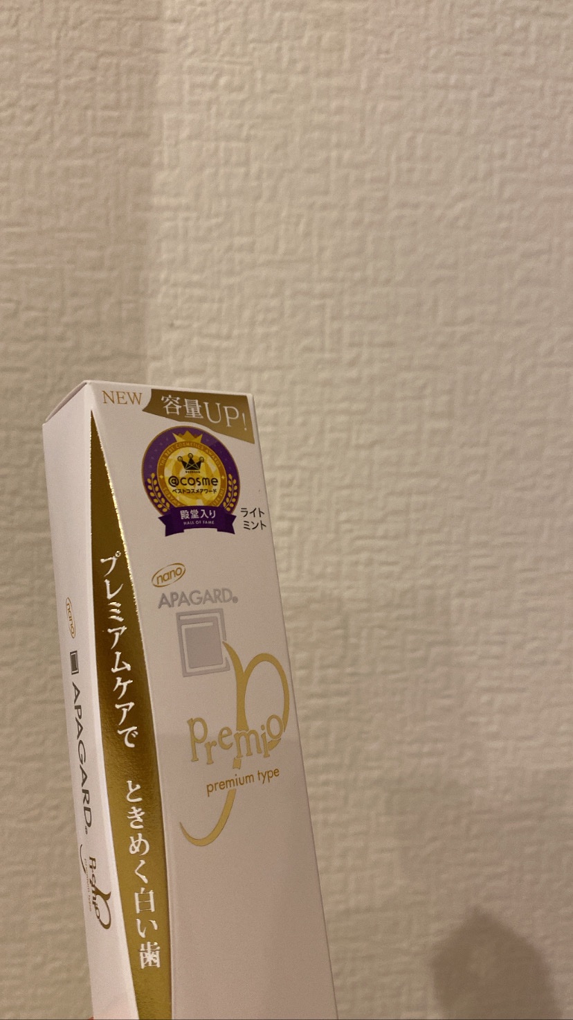 - 【医薬部外品】 独自成分「薬用ハイドロキシアパタイト」がエナメル質を整えてむし歯を予防。アパガードはエナメル質の健康を保つことで自然な白い歯に導く美白歯みがきブランド。アパガードプレミオは「薬用ハイドロキシアパタイト」を高配合(スタンダードタイプ比)。プレミアムケアでときめく白い歯に。 <ライトミント> ●サンギ独自の薬用成分ナノ粒子「薬用ハイドロキシアパタイト」を高配合したプレミアムタイプ。※Mプラス、スモーキン比 ●歯の再石灰化率、白色度もアップ。 ●歯垢を吸着除去し、歯のエナメル質の目に見えない傷を埋め、ミネラル欠損部(初期むし歯)を再石灰化するナノ<mHAP>の3つの働きで、むし歯を予防。 ●パール成分(加水分解コンキオリン液)配合。 <エクストラミント> ●強めのミントがお好みの方におススメ!ミント強めの「エクストラミント」フレーバー。 ●サンギ独自の薬用成分ナノ粒子「薬用ハイドロキシアパタイト」を高配合したプレミアムタイプ。※Mプラス、スモーキン比 ●歯垢を吸着除去、エナメル質表面の目に見えない傷を埋めてなめらかに、エナメル質から溶け出したミネラルを補給(再石灰化)する、という薬用ハイドロキシアパタイトの3つの作用でむし歯を予防。 ●パール成分(加水分解コンキオリン液)を追加したブライトニング処方