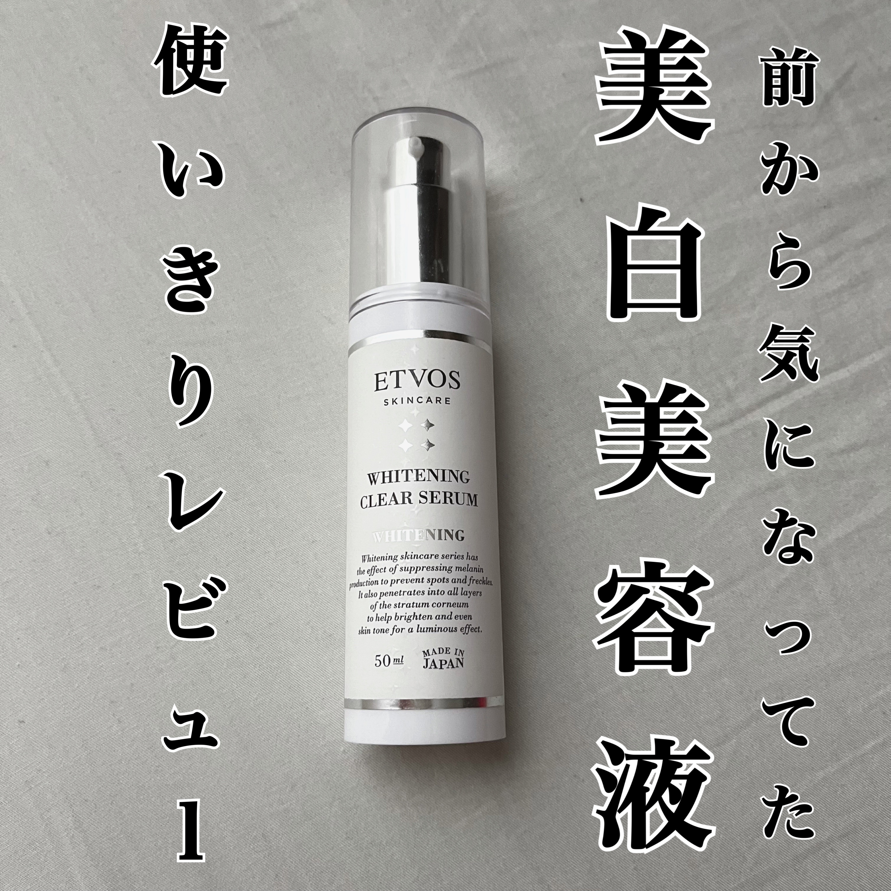 【使った商品】エトヴォスホワイトニングクリアセラム【商品の特徴】美白美容液【肌質】乾燥【テクスチャ】少しさっぱり【どんな人におすすめ?】シミの予備軍を防止したい人【良いところ】初めての美容液には使いやすい【イマイチなところ】少しコスパ良くなく...