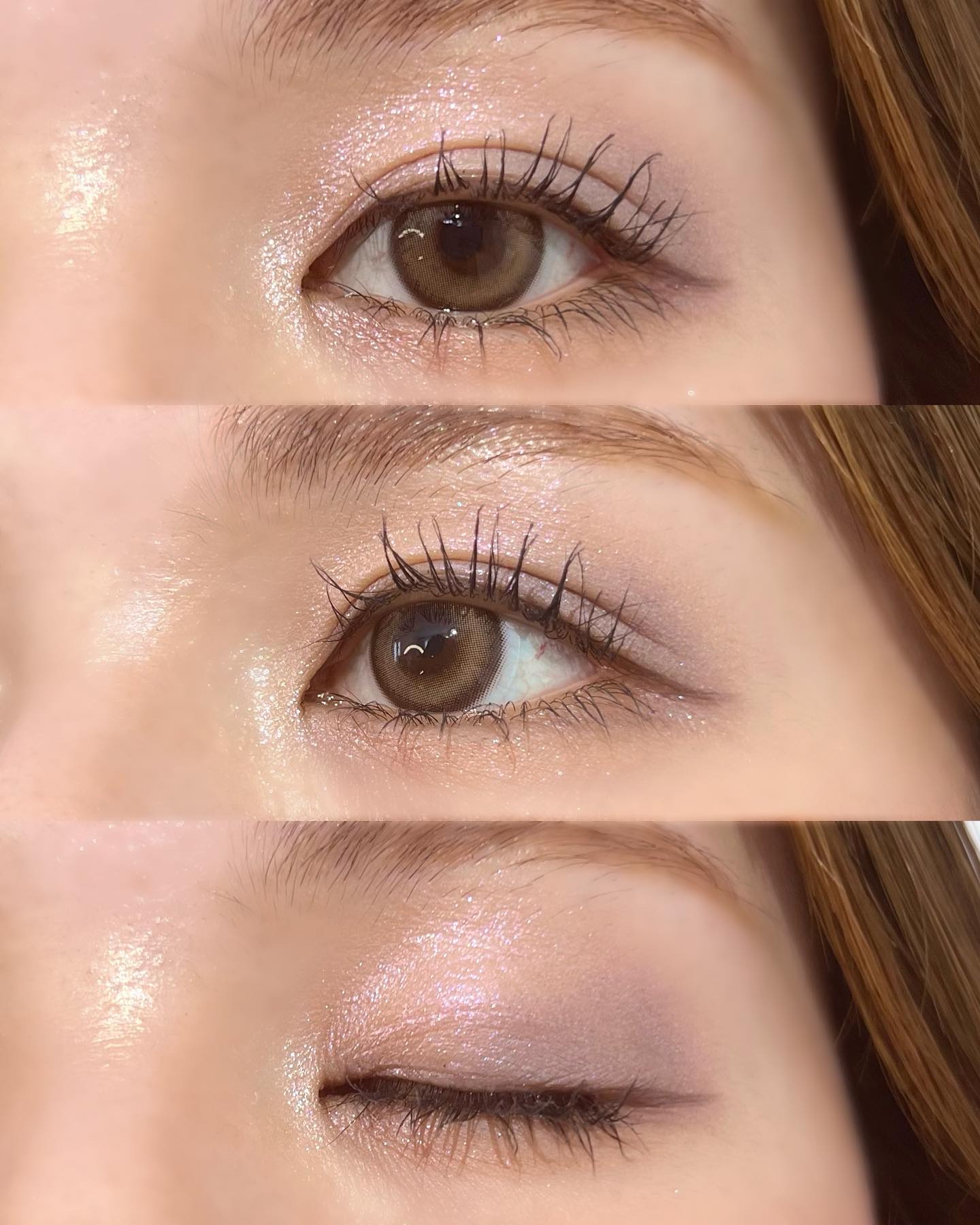 右上のピンクラメをベースに仕込んでメイクしたんだけどツヤと煌めき感えぐすぎる😳💎可愛い、、 そこに右下のカラーを重ねるとじんわり血色感が滲み出るような目元になるよ🦩 これは欠品店舗続出しそう🫣