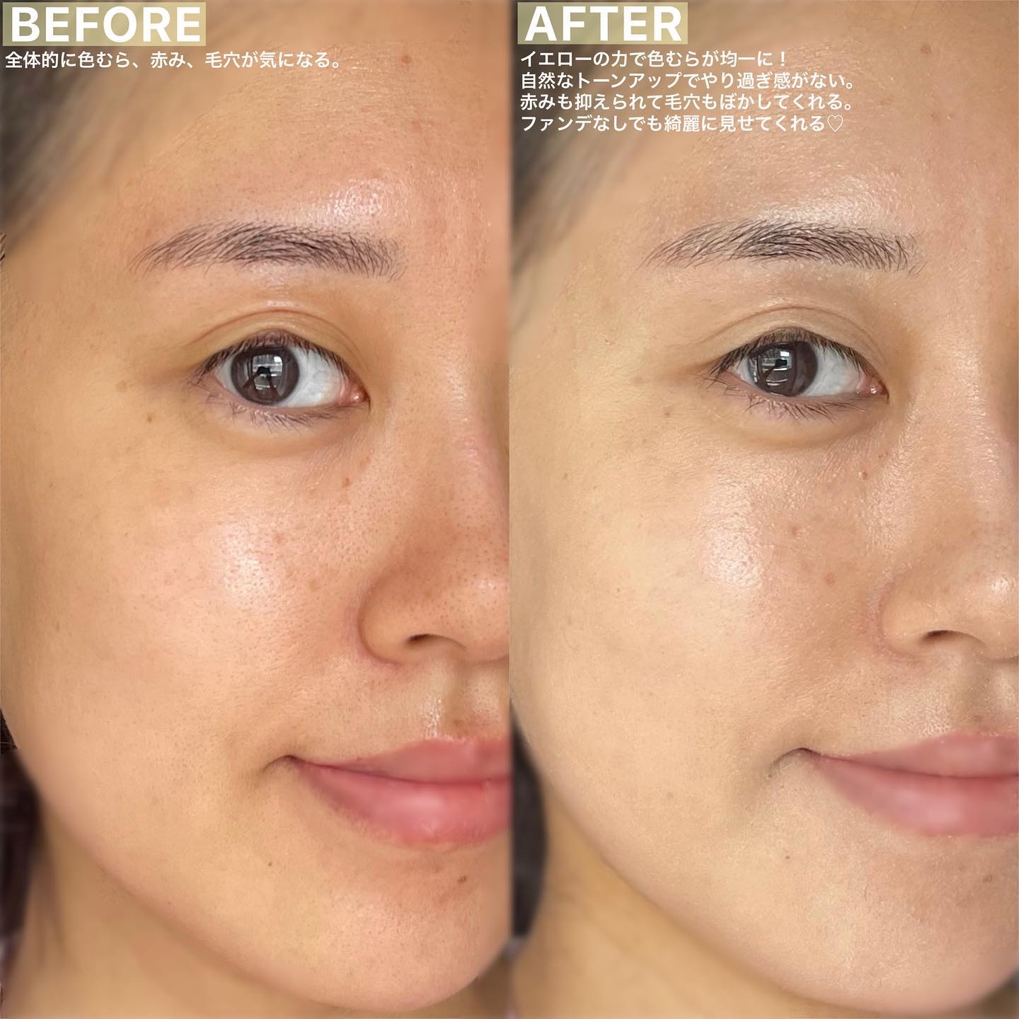 毛穴も完璧ではないですが目立たなくなってトーンアップもしてくれます✨ スキンケア発想でお肌を守りながら毛穴レスに整えトーンアップ! イエローで色ムラカバー。肌トーンを均一に見せたい方に。