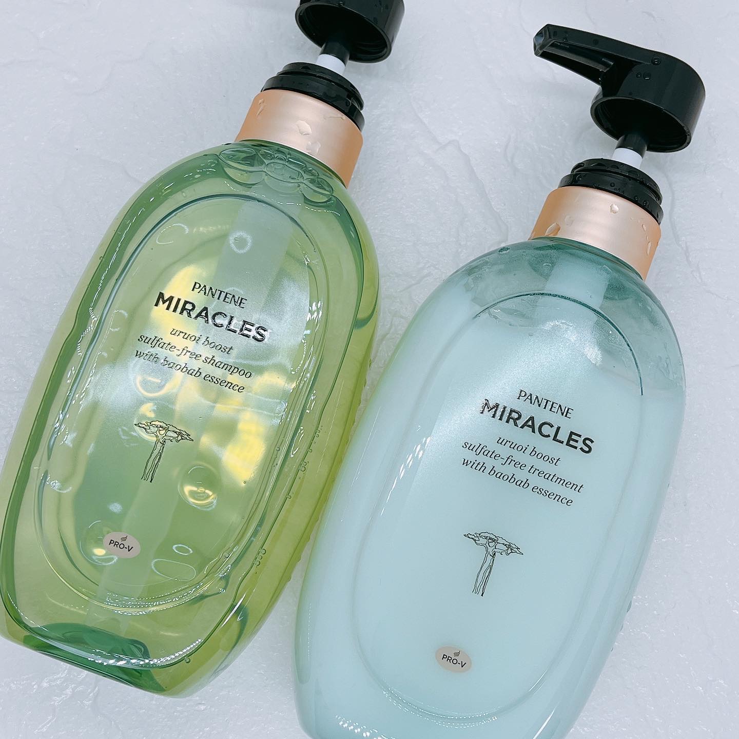 ボトルのフォルムがマカロンみたいでかわいくて気になってた「パンテーン ミラクルズ うるおいブースト」🍑✨ 使ってみたら、香りがめちゃくちゃ良くて家族にも褒められた🥰 クリーンムスクの香りがふんわり続くのが嬉しい💕 シャンプーは泡立ちがよく、泡がしっとりしてる感じ◎ ドライ後の髪もまとまりが良くて、これからも使い続けたい!