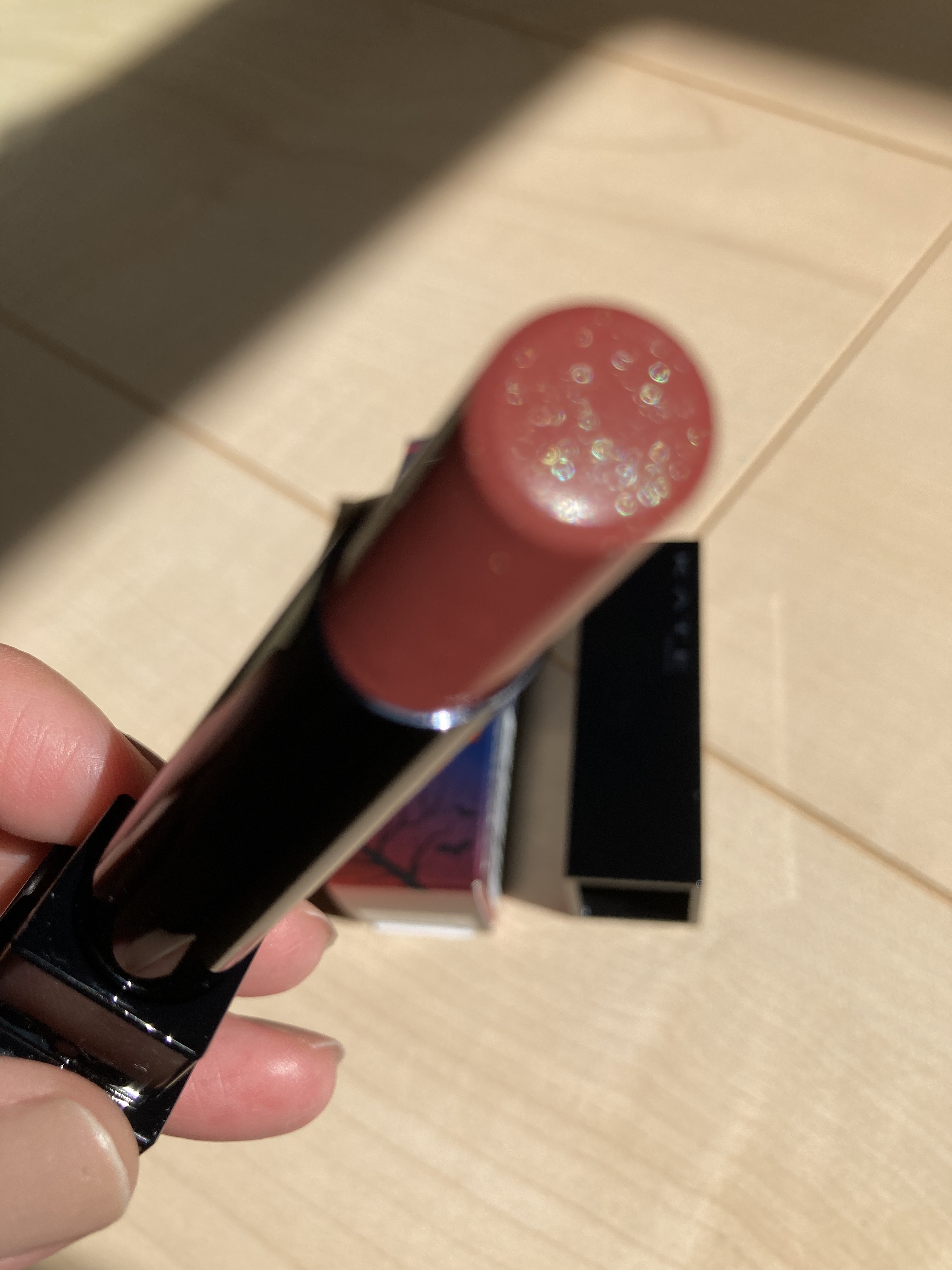 104 グリーンラメ緑のラメが繊細でで上品ベージュピンクの落ち着いたカラーの中にグリーンが入っているのでひと味違ったピンクリップにベーシックなカラーだけど遊び心があるカラー🌿 106 ブルーラメ青のラメがチラチラと輝いて美しい見た目のど紫に圧倒されるけど実際塗ってみると綺麗な青みピンクに発色シアー感のある仕上がりなのでとても使いやすい見た目と発色のギャップにもまた心うたれる💘 限定品なのでとにかくどこのお店でも手に入らない、、!予約してやっと捕獲出来ました😭この希少なモンスターを見かけたらそれは運命かも👾💕