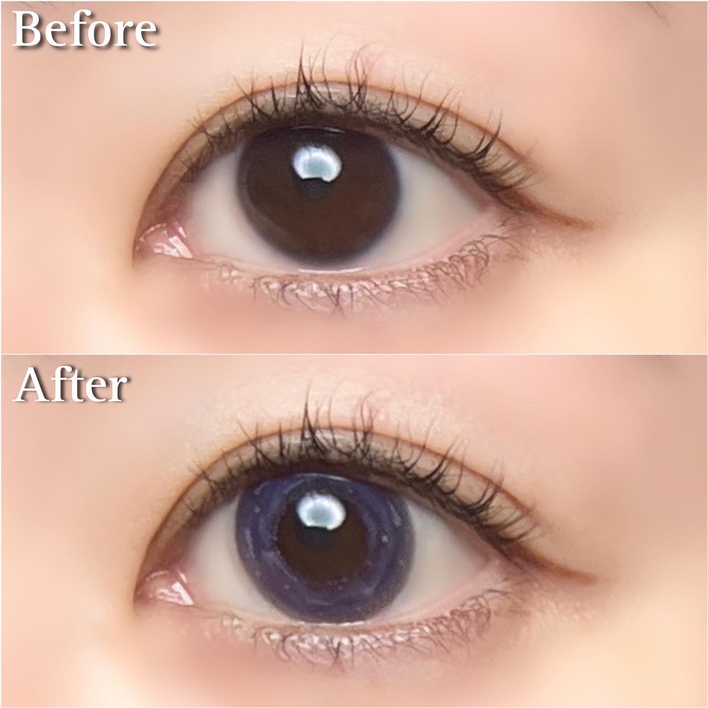 個性的なカラーからナチュラルなものまで幅広いラインナップで見てて楽しかったです! 透明感のあるブルーグレーが瞳に溶け込み、リアルなグレーアイに見せるレンズ。 透け感のある色味だけどしっかり発色するナチュラルハーフ系カラコン。着色直径も小さめなので着せ替え感があってかわいい。 N's COLLECTIONはレンズのつけ心地もすごく良くて他のカラーもとっても可愛いです!