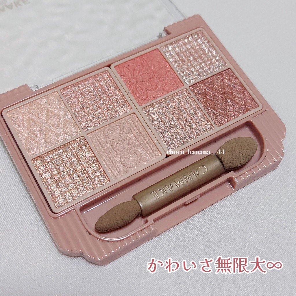 - 持ち歩ける多色パレットがキャンメイクから登場! 捨て色なしの8色入り&チップ付! 「持ち歩けること」や「外出先でもメイク直しができること」を重視した多色パレット。 持ち運びやすいサイズ感なのに、贅沢に8色入りです。 さらに便利なダブルエンドチップまで! マット×パール×ラメなど、組み合わせ方はあなたの自由! 自分好みのアイメイクを楽しめます。