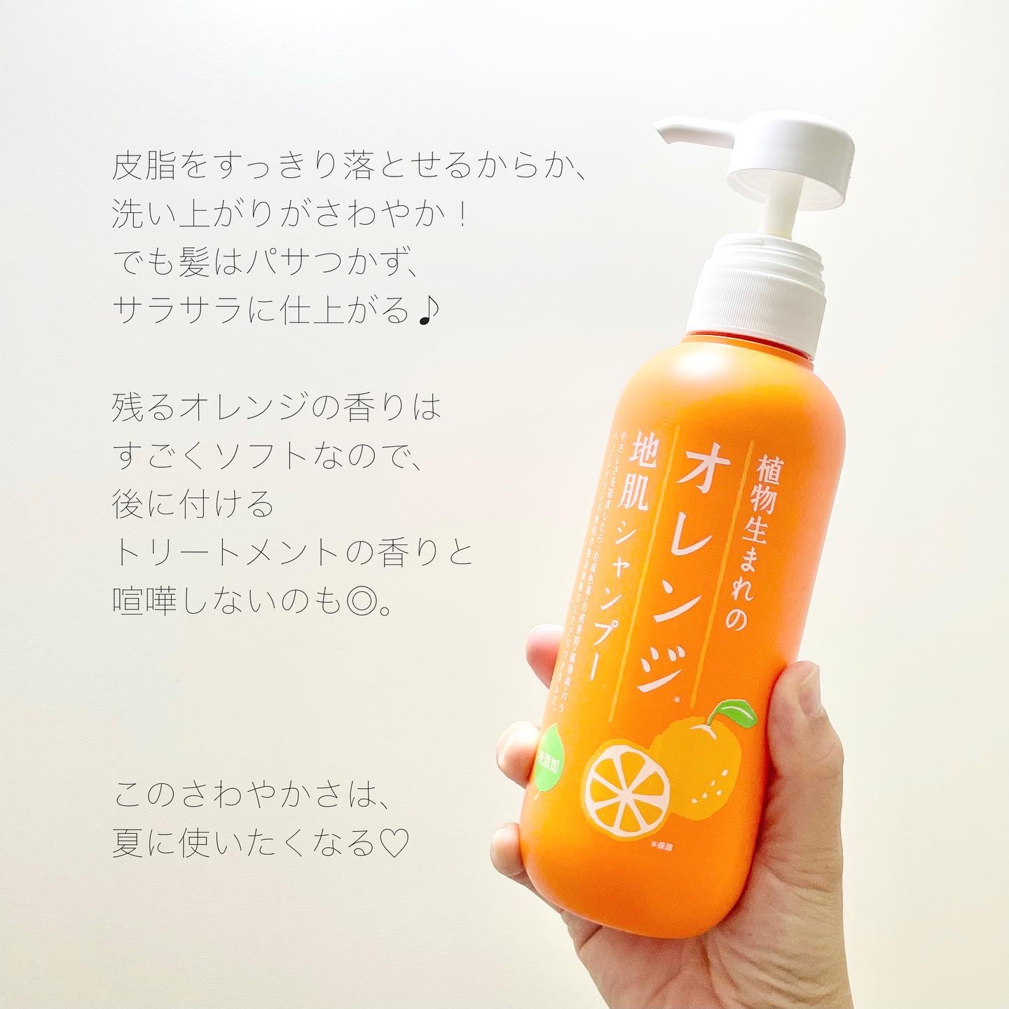 植物生まれのオレンジ地肌シャンプーS 搾りたてオレンジ香る🧡髪と地肌にやさしいシャンプー🍊 植物由来の石けんベースの洗浄成分が脂の詰まった毛穴もスッキリきれいに✨ 泡立ちが良く、弱酸性だからキシまずやさしい洗いあがり🫧 傷んだ髪もしっとりうるおってサラサラに!✨ 天然のオレンジ果汁をフレッシュなまま配合◎ 苦みまでそのままなのでオレンジの香りがバスルームいっぱいに広がります☺ オレンジそのままを連想させる香りと、オレンジ色した透明のとろっとしたシャンプー🍊 私めちゃくちゃ頭皮弱くてかゆみが出るタイプなのですっごく嬉しい♡♡♡ 少しスーっとした感じがあるので夏場にぴったり◎! 子どもたちの汗でぺたんこになってる髪の毛がふわっと仕上がるのでとても気に入ってる😍 泡立ちも泡切れも良いので凄くオススメです! 詰替え用もあるので、気になる方はぜひチェック✅してみてくださいね💓