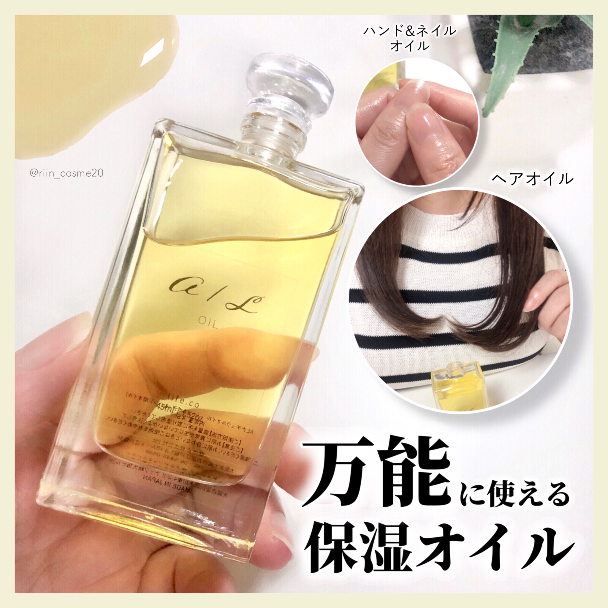 - 植物が持つ秘めた力を最大限引き出した天然由来成分99.45%のオーガニックマルチオイル。 ヘア・ボディ・ハンドに使用でき、さらっとしたテクスチャーで乾燥しがちな毛先や手指にうるおいを与えます。