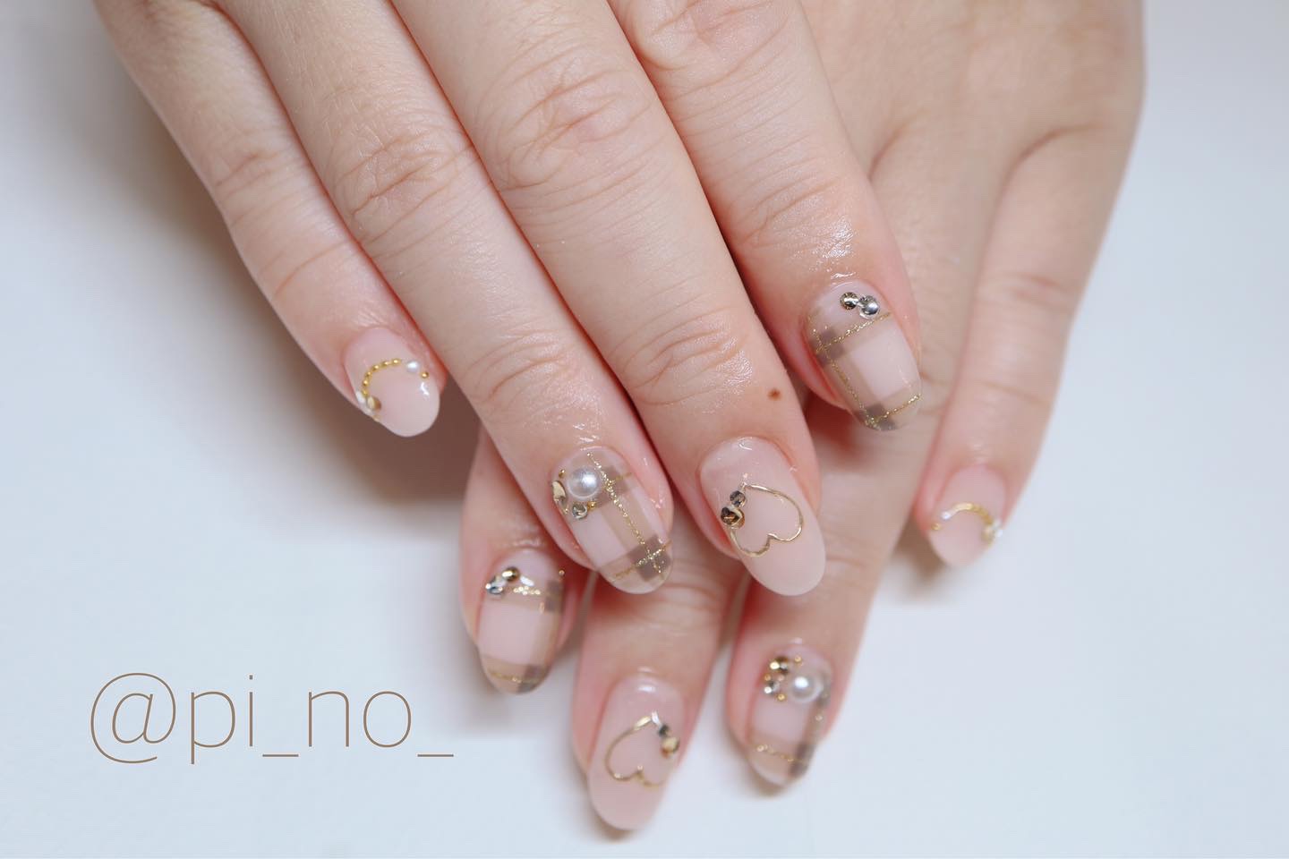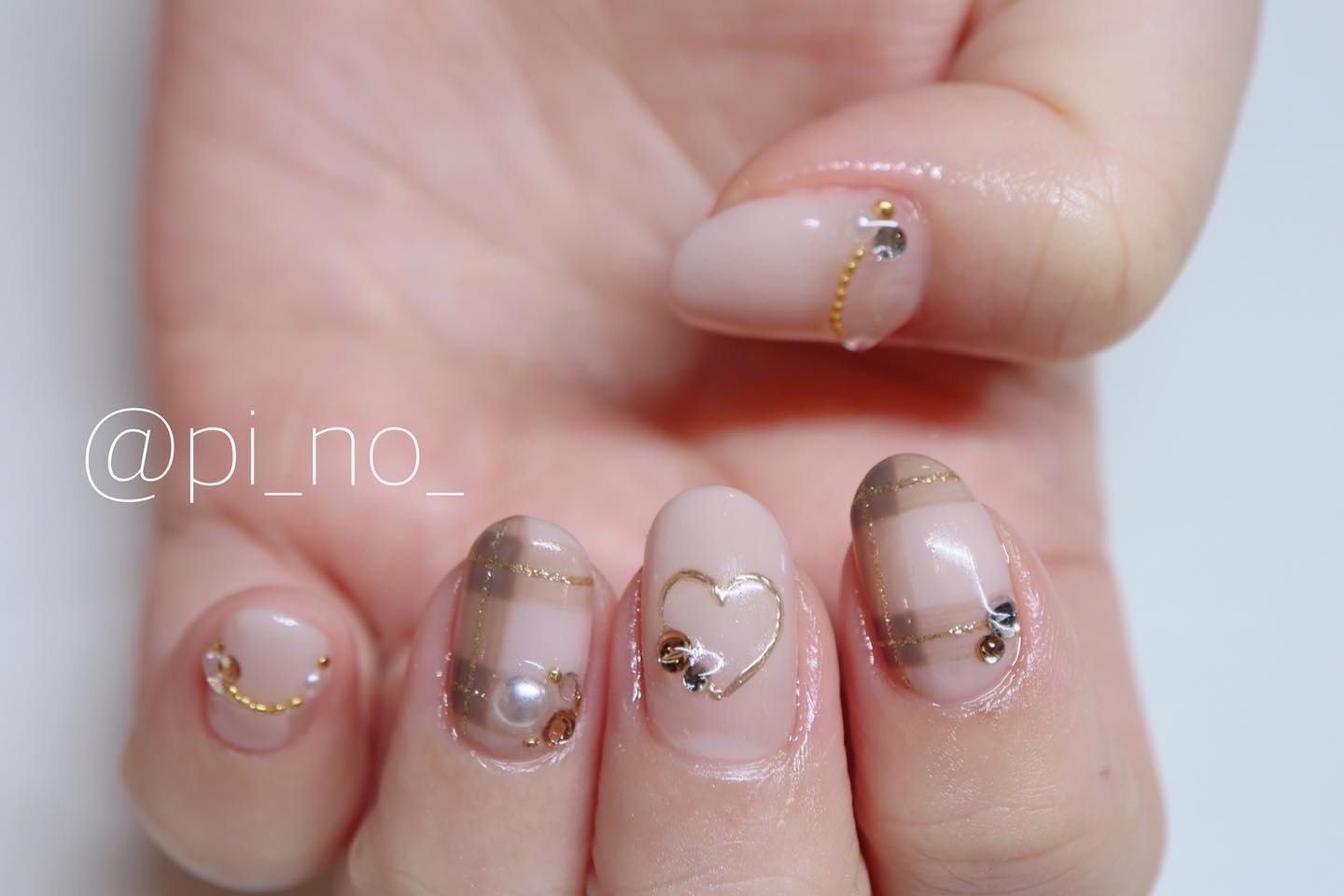 やり方は画像を参考にしていただければと思います😊 ちふれのクリアピンクでラインを描くときは、ハケの角を使うと描きやすいです✨ 使用したリボンパーツはセリアで購入したものになります。大きめのパーツなのでネイル用接着剤でつけると良いです。 中指のデザインに使用した細筆は、ダイソーの使い捨てタイプのものになります。 人差し指と小指は、キャンメイクN43番を2度塗りしました☺️