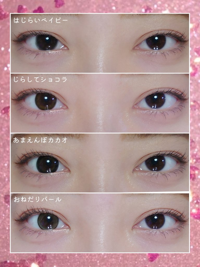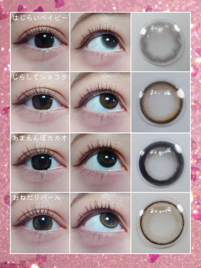 どれも着色直径も大きすぎず付け心地が良いしナチュラルで どんなメイクにも合うようなカラコンなのですが、 私が特にお気に入り・リピったことあるよ〜という種類は ハグミー、ステイミー、ヘイリー、ムースブラウン、ビアンカかな😌❤️ 最近は特に ハグミー がお気に入りです。どれもナチュラルなので普段使いに最適。おすすめです✌️