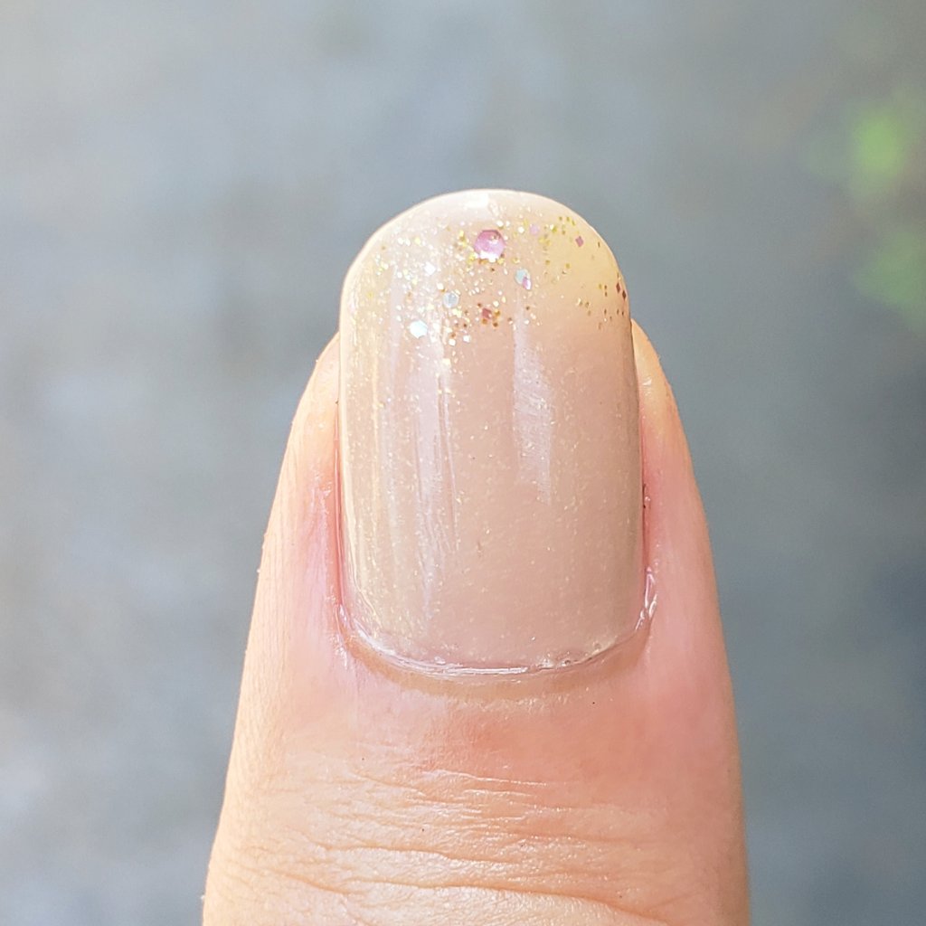 ポイントとしては、ガラスフレンチ部分は一息でやること…かな。 手順でいうと②~④だね。ベースにしたローズミルクティーが乾いたら、フレンチラインをひくところからメタルホロを貼り付けるところまでサッサッサッと💨 下準備として、メタルホロはちょうどいい大きさに切っておくと作業がスムーズ◎ それから、メタルホロを使うときは下にティッシュかキッチンペーパーを敷いておくと片付けもラク◎ 指一本ずつの作業だから、ネイルにかかる時間がかなり長くなるけど、やっぱりガラスフレンチは可愛い🖤