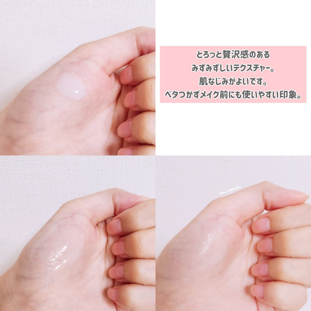 | ほんのり透ける白い液で、テクスチャはゆるめ。よく伸びます。 | 詳細を見る | |