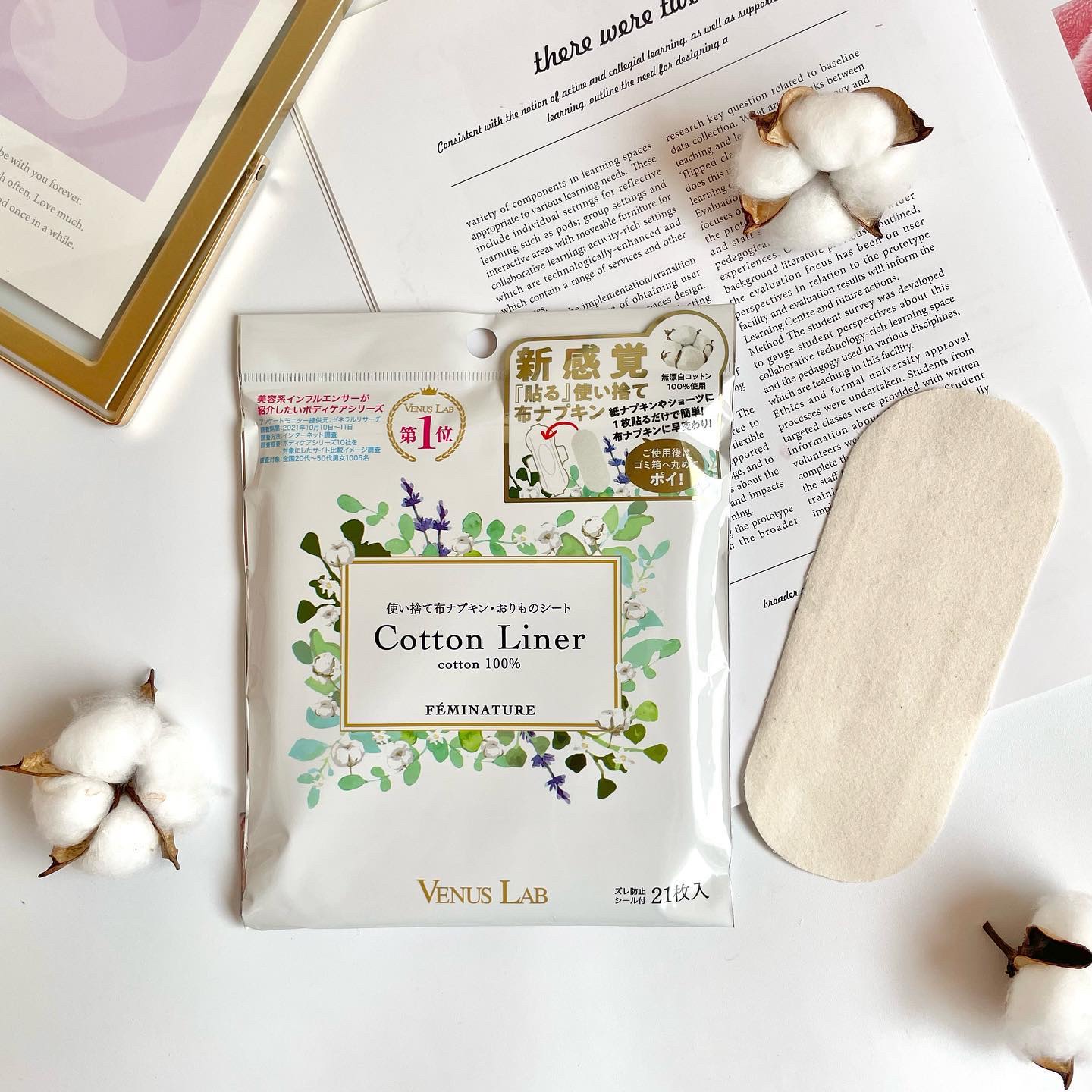 ヴィーナスラボフェミナチュールコットンライナー新感覚の貼る使い捨て布ナプキン🤍裏面にあるテープの離型紙をはがして紙ナプキンや布ナプキン、吸水ショーツ、タンポン、月経カップに貼って使用。ただし下着などへ直接貼る場合は粘着部分が残る部分があるか...