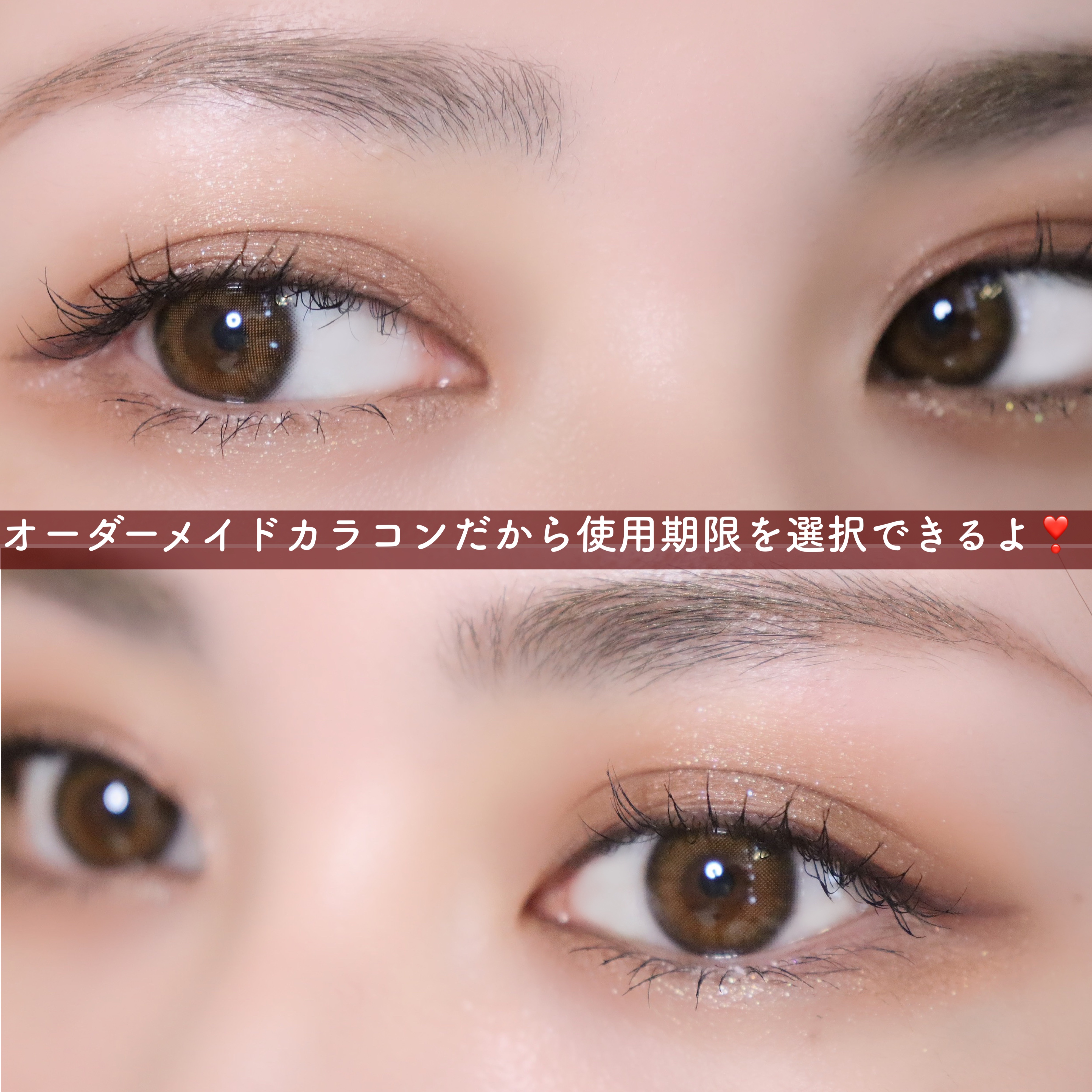 フチなしで上品に仕上がるダークブラウン イエローとブラウンで可愛い色味🤎 普段使いできるし含水率が高い55%だからゴロゴロせずに過ごせる💓 オーダーメイドカラコンだから新鮮なままつけられるのもオススメポイント😍