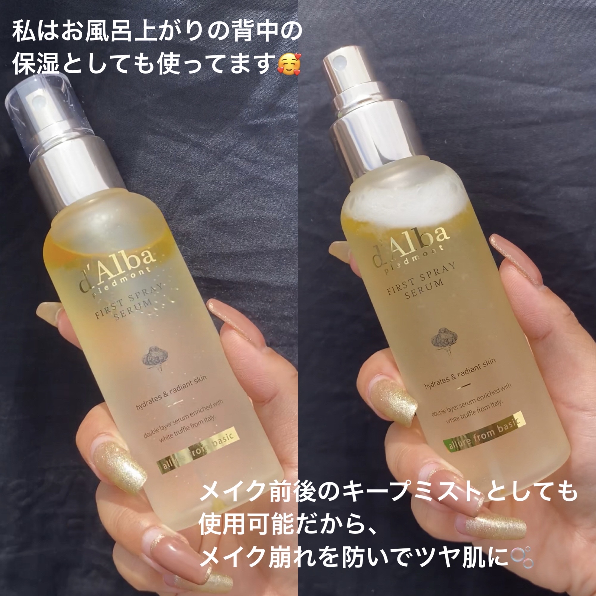 ホワイトトリュフファーストスプレーセラム!ダルバ様よりd'AlbaxMIYOSHIAYAKAの記念イベントにていただきました!とりあえず香りが良すぎて卒倒するかと思いました、それでいて上品……!ファンデに仕込むのもいいらしい、可能性無限大の品...