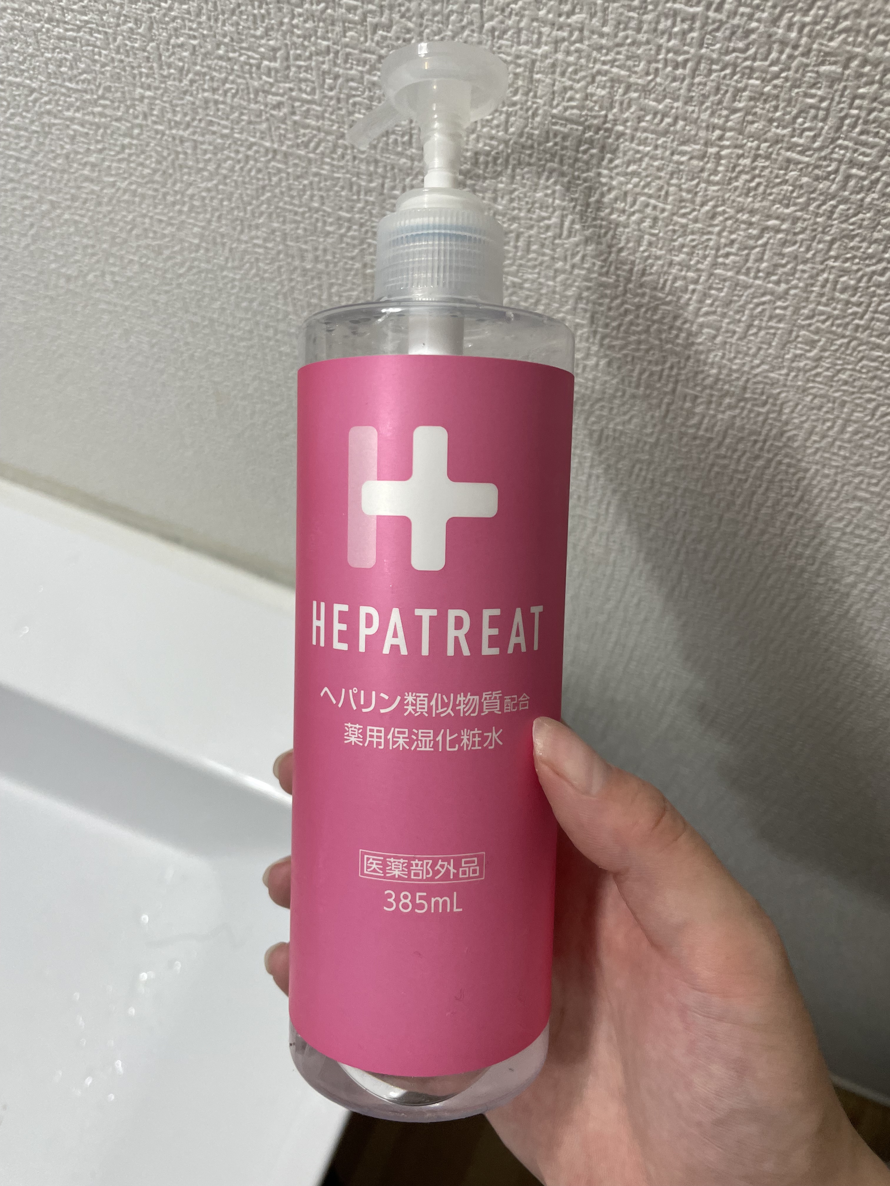 - ヘパトリートは保水有効成分のヘパリン類似物質と肌あれ有効成分のグリチルリチン酸ジカリウムを配合し、8つのフリーを実現。低刺激処方ながら高機能な化粧水です。さらに、薬用化粧水では珍しい大容量ポンプ(385mL)でとても使いやすく、赤ちゃんから大人まで、顔や全身の肌あれ・乾燥に使えます。 ■Wの有効成分 1.ヘパリン類似物質 顔・全身の乾燥を防ぐ 肌の乾燥による肌あれ/あれ性/皮膚を健やかに保つ/肌を整える/あせも/ひび/あかぎれ 2.グリチルリチン酸ジカリウム ニキビを防ぐ/肌をひきしめる/日やけ、雪やけ後のほてりを防ぐ/しもやけ/かみそりまけを防ぐ ■肌にやさしい低刺激処方<8つのフリー> 無香料/無着色/無鉱物油/無動物油/パラベンフリー/アルコールフリー/石油系界面活性剤フリー/シリコンフリー ※パッチテスト済み ※スティンギングテスト済み