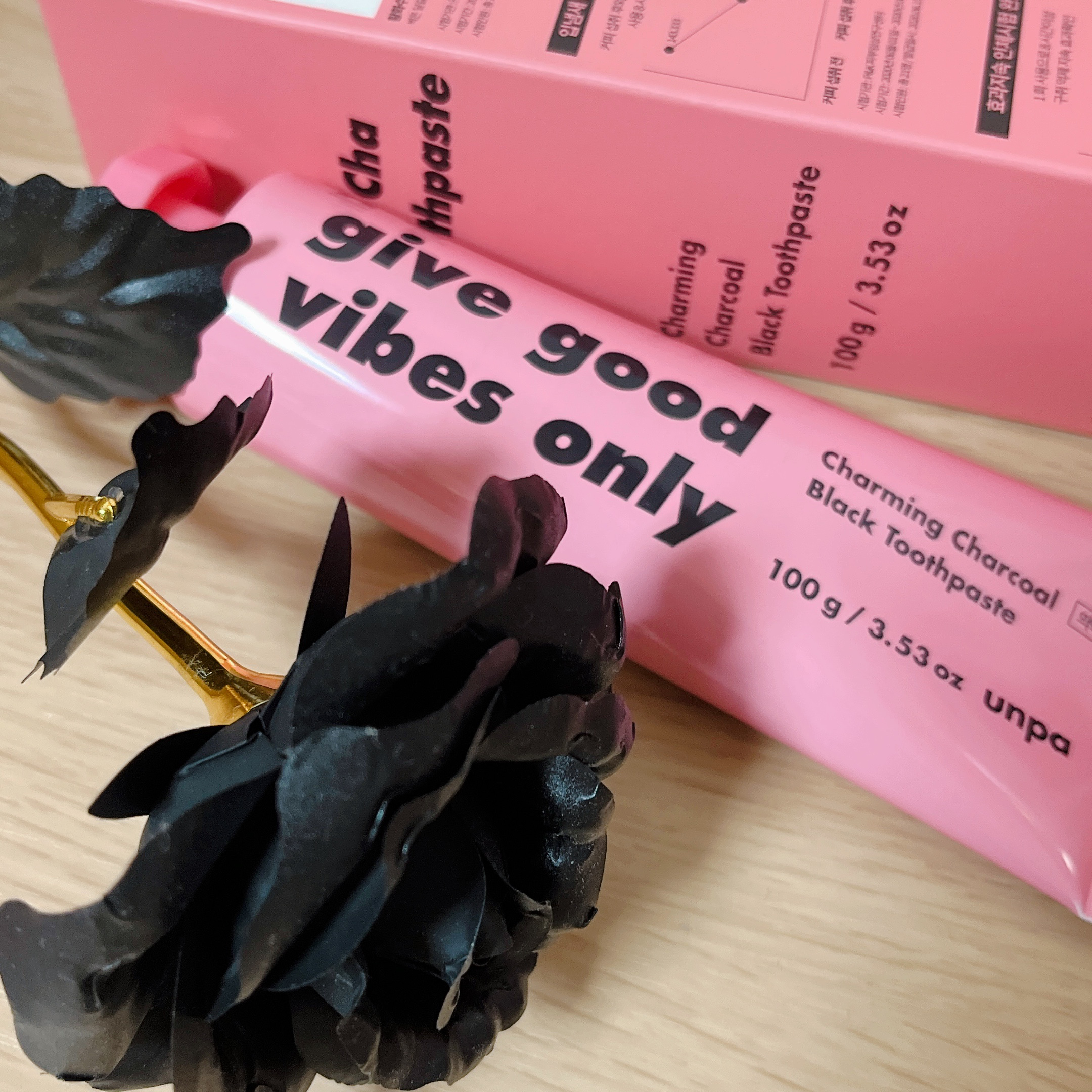 チャコール(炭)パウダーが汚れとニオイの元となる歯垢を除去、気になる口臭を防いでくれるそう 磨くとグレーの泡でちょっとびっくり。泡立ちは控えめで、スペアミントの爽やかな味。 まるでハンドクリームのようなパケもオシャレ。歯が綺麗だと気分も上がるので、続けて使いたいです。