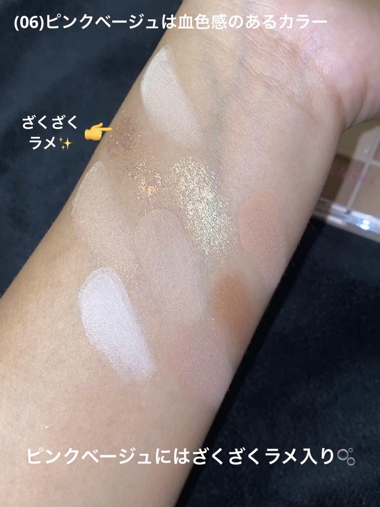 - <01 オレンジブラウン> タルク、ミリスチン酸Mg、テトライソステアリン酸ペンタエリスリチル、パルミチン酸エチルヘキシル、オキシ塩化ビスマス、メチルパラベン、プロピルパラベン、(+/−)シリカ、マイカ、ジメチコン、酸化鉄、酸化チタン、酸化スズ、ホウケイ酸(Ca/AI)、赤202、黄4、合成フルオロフロゴパイト、コチニール <02 キャラメルブラウン> タルク、ミリスチン酸Mg、テトライソステアリン酸ペンタエリスリチル、パルミチン酸エチルヘキシル、オキシ塩化ビスマス、メチルパラベン、プロピルパラベン、(+/−)シリカ、マイカ、ジメチコン、酸化鉄、酸化チタン、酸化スズ、ホウケイ酸(Ca/AI)、赤202、黄4、合成フルオロフロゴパイト、コチニール <03 スモーキーピンク> タルク、ミリスチン酸Mg、テトライソステアリン酸ペンタエリスリチル、パルミチン酸エチルヘキシル、オキシ塩化ビスマス、メチルパラベン、プロピルパラベン、(+/−)シリカ、マイカ、ジメチコン、酸化鉄、酸化チタン、酸化スズ、ホウケイ酸(Ca/AI)、赤202、黄4、合成フルオロフロゴパイト、コチニール <04 コーラルピンク> タルク、ミリスチン酸Mg、テトライソステアリン酸ペンタエリスリチル、パルミチン酸エチルヘキシル、オキシ塩化ビスマス、メチルパラベン、プロピルパラベン、(+/−)シリカ、マイカ、ジメチコン、酸化鉄、酸化チタン、酸化スズ、ホウケイ酸(Ca/AI)、赤202、黄4、合成フルオロフロゴパイト、コチニール <05 ミルクベージュ> タルク、ミリスチン酸Mg、テトライソステアリン酸ペンタエリスリチル、パルミチン酸エチルヘキシル、オキシ塩化ビスマス、メチルパラベン、プロピルパラベン、(+/−)シリカ、マイカ、ジメチコン、酸化鉄、酸化チタン、酸化スズ、ホウケイ酸(Ca/AI)、赤202、黄4、合成フルオロフロゴパイト、コチニール <06 ピンクベージュ> タルク、ミリスチン酸Mg、テトライソステアリン酸ペンタエリスリチル、パルミチン酸エチルヘキシル、オキシ塩化ビスマス、メチルパラベン、プロピルパラベン、(+/−)シリカ、マイカ、ジメチコン、酸化鉄、酸化チタン、酸化スズ、ホウケイ酸(Ca/AI)、赤202、黄4、合成フルオロフロゴパイト、コチニール