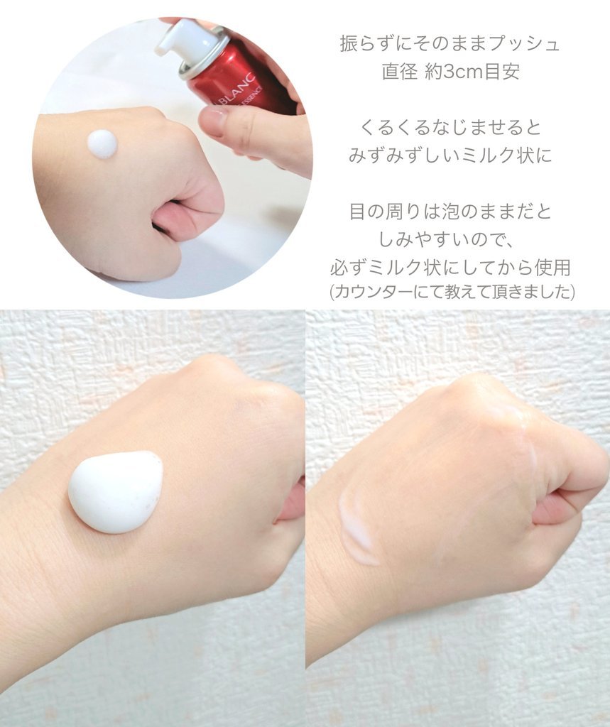 - 【医薬部外品】 潤いを巡らせる高密度*2な炭酸泡*1の美容液 より高密度*2な炭酸*1泡が角層の奥深く浸透し、うるおいが駆け巡り、光溢れる透明感を生み出す。この新たな美しさをあなたへ。 ・潤ってキメを整え明るい透明感へ:日本で唯一*3ALBLANCに配合センレンシエキス(保湿) *3 日本で唯一薬用化粧品にALBLANCが配合(22年12月時点) ・シミ・ソバカスを防ぐ*4:有効成分カモミラET配合 ・ブランケア成分Ⅱ(保湿)配合 *1 炭酸ガス(噴射剤) *2 改良前薬用ファーストエッセンスとの比較 *4 メラニンの生成を抑え、シミ・ソバカスを防ぐ