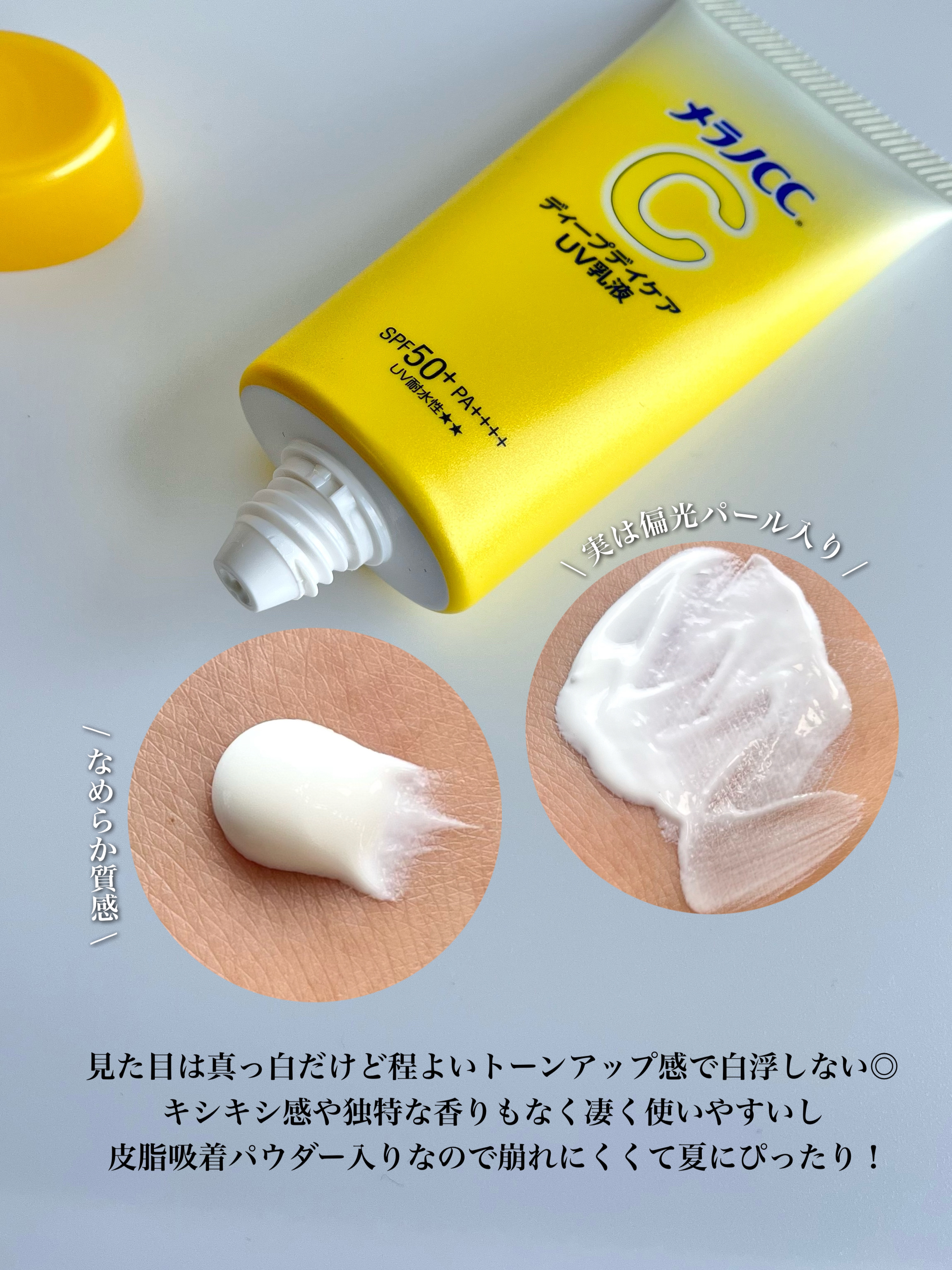 ▶メラノCC/ディープデイケアUV乳液ロート製薬様のメラノCCシリーズは、洗顔・化粧水・乳液・美容液と一通り使ったことがあるのですがなかでも、ディープデイケア乳液がお気に入り😚もう3回ほどリピートしています!✅おすすめポイント・うるおい成分と...
