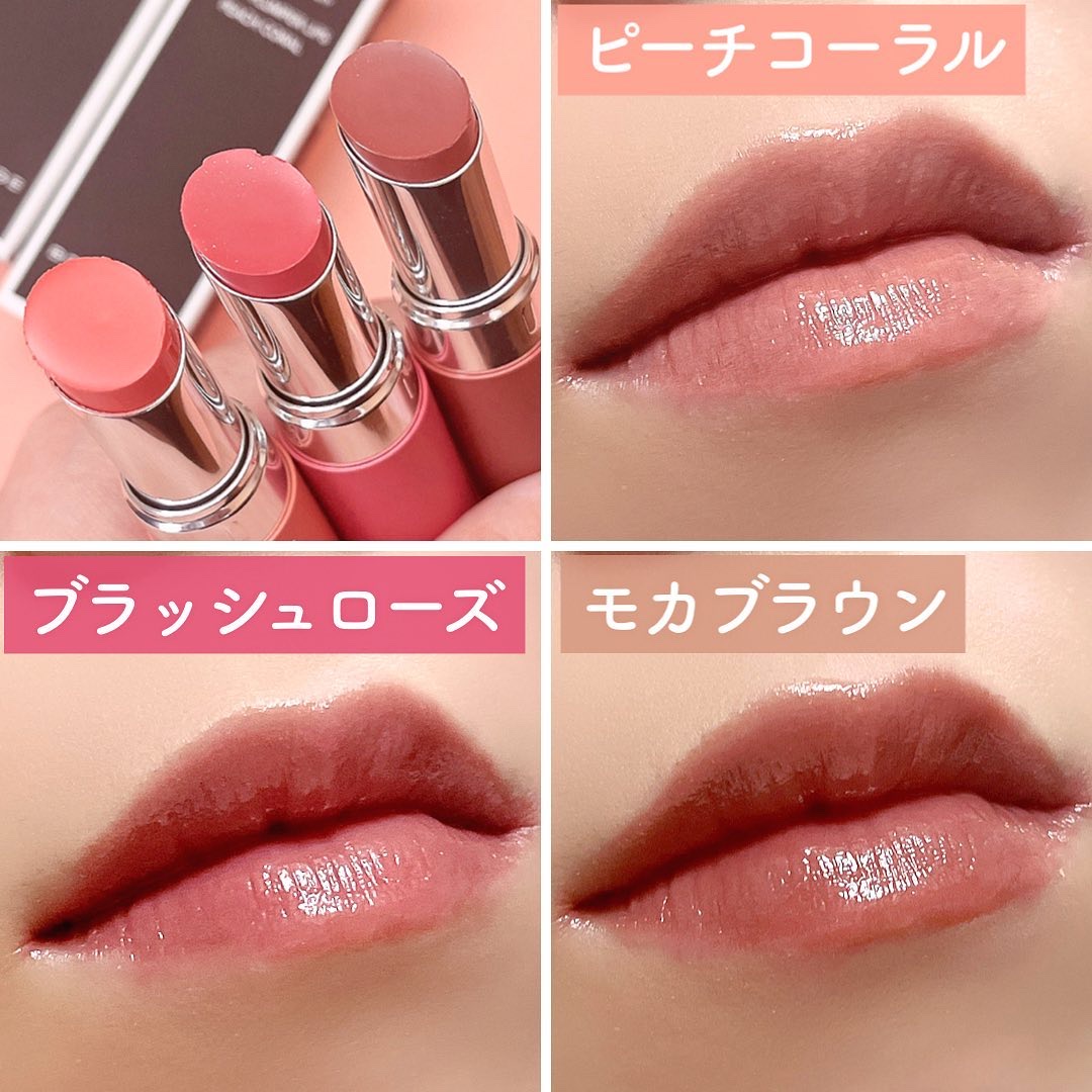 塗って時間が経つと唇の凹凸をなめらかにして密着し、ぷるんとしたボリューム感のある唇に♡♡ サラッとしたなめらかなテクスチャーで軽いつけ心地でベタつきもないため、塗っても不快感がなく使いやすいです😊 今回の新色は穏やかな春風のようにより一層柔らかくなった果実をイメージしたレイジーベージュカラー!!