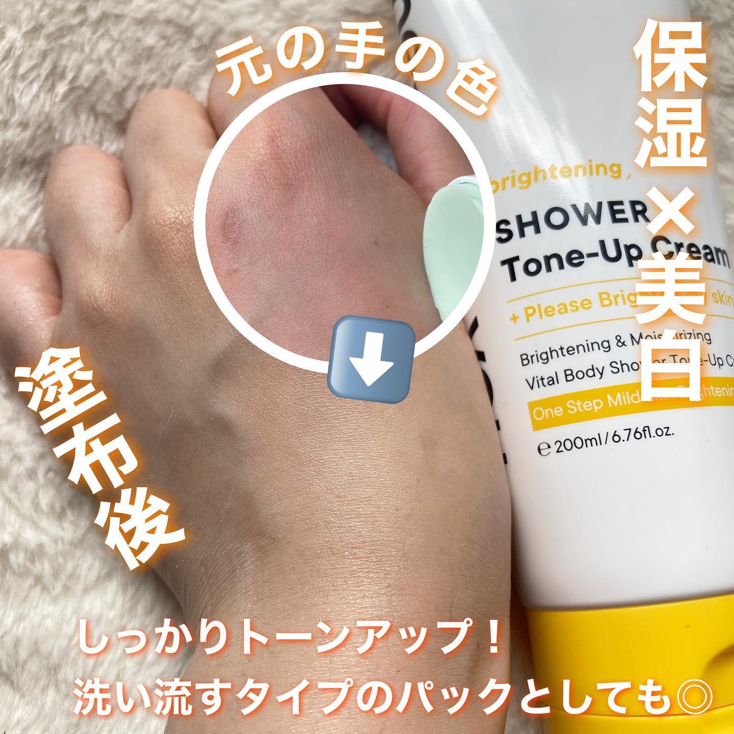 One-day'syouブライトニングシャワートーンアップクリーム🍋洗い流すタイプトーンアップクリームは初めて!たっぷり200g入っていてコスパ良し🌸お風呂場で塗って、少し置いた後にしっかり洗い流します🍃洗い流したあとはしっとり&肌のトーンが...