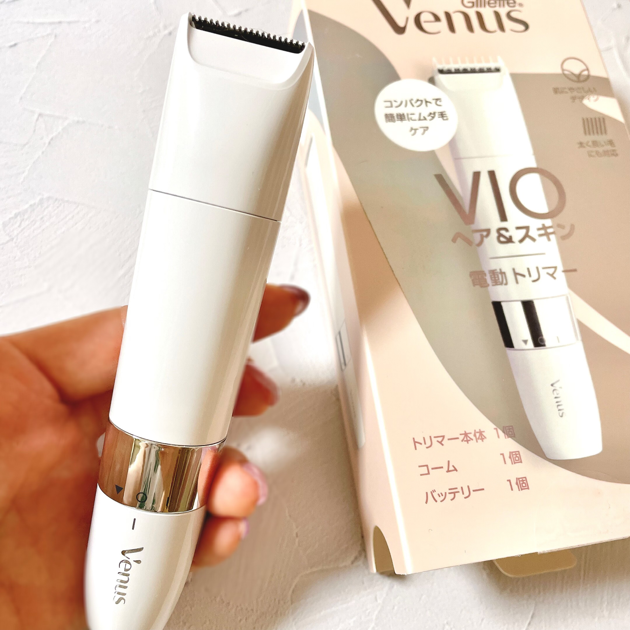 VIO用のシェーバー使えばいいじゃんと言われ、そんなもんあるんか!となったわけなんです。 電動なのとお風呂場でも使えるところが決め手✨ あとサイズ感も小さめだからちょっとずつ調整しながら使いやすい。 今回のお試し品☞ Gillette Venus VIOヘア&スキン電動トリマー (参考価格¥3,500税込)