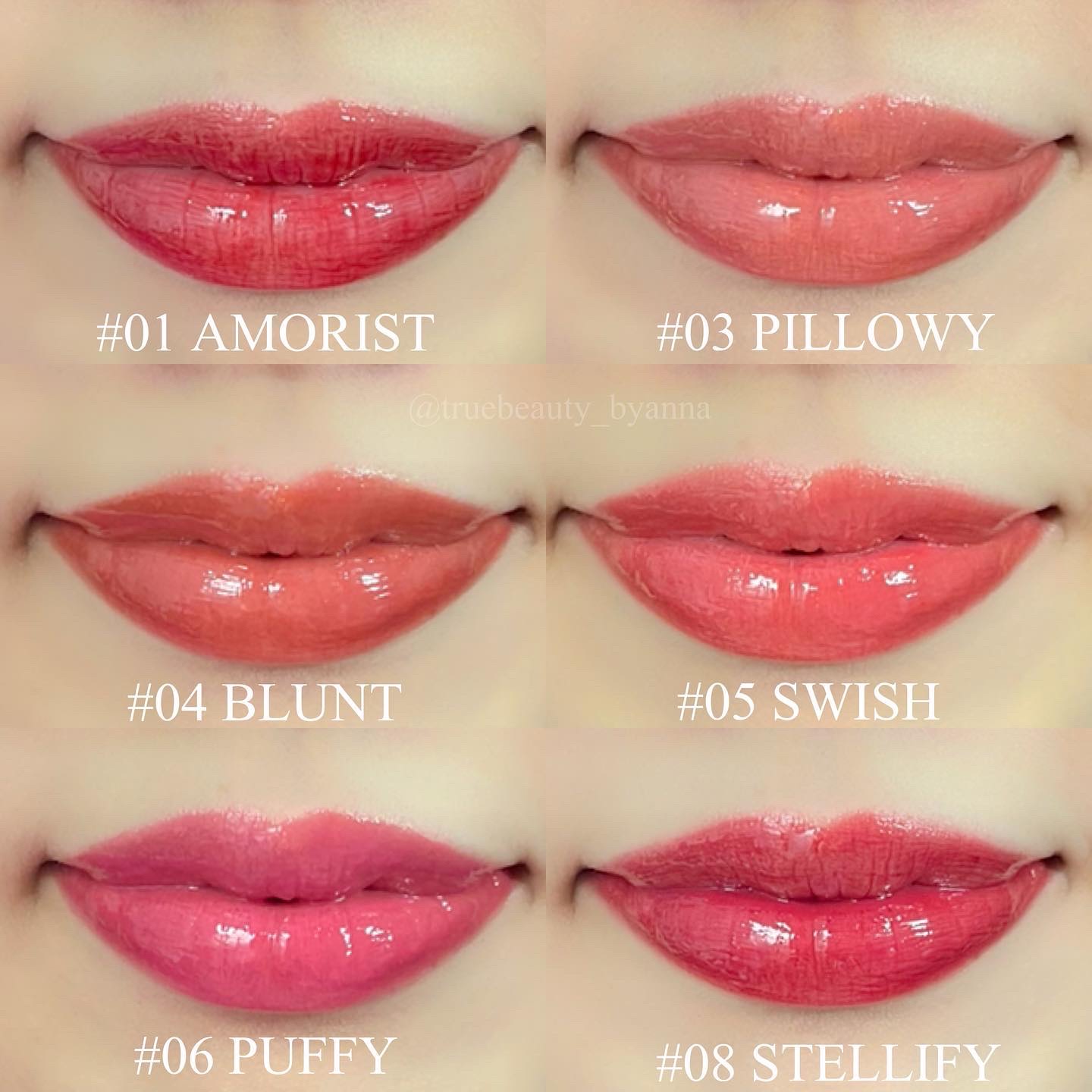 - <01 アモリスト(AMORIST)> リンゴ酸ジイソステアリル、ジフェニルシロキシフェニルトリメチコン、水、ジフェニルジメチコン、ビスジグリセリルポリアシルアジペート-2、水添ポリイソブテン、ポリグリセリン-3、ポリソルベート60、セチルPEG/PPG-10/1ジメチコン、イソステアリン酸ソルビタン、BG、ペンチレングリコール、1,2-ヘキサンジオール、ジメチコン、(アクリル酸ヒドロキシエチル/アクリロイルジメチルタウリンNa)コポリマー、セテアレス-20、スクワラン、黄5、エチルヘキシルグリセリン、香料、赤227、赤104(1)、リナロール、青1、ヘキシルシンナマル、リモネン、ホホバ種子油、アンズ核油、ツバキ種子油、トコフェロール <02 ビーミッシュ(BEAMISH)> リンゴ酸ジイソステアリル、ジフェニルシロキシフェニルトリメチコン、水、ビスジグリセリルポリアシルアジペート-2、ジフェニルジメチコン、水添ポリイソブテン、ポリグリセリン-3、ポリソルベート60、セチルPEG/PPG-10/1ジメチコン、イソステアリン酸ソルビタン、BG、1,2-ヘキサンジオール、ジメチコン、ペンチレングリコール、(アクリル酸ヒドロキシエチル/アクリロイルジメチルタウリンNa)コポリマー、セテアレス-20、スクワラン、酸化チタン、黄5、エチルヘキシルグリセリン、香料、赤227、赤104(1)、リナロール、水酸化Al、ポリアクリル酸アンモニウム、フェノキシエタノール、ヘキシルシンナマル、リモネン、アンズ核油、ツバキ種子油、ホホバ種子油、トコフェロール <03 ピロウィ(PILLOWY)> リンゴ酸ジイソステアリル、ジフェニルシロキシフェニルトリメチコン、水、ビスジグリセリルポリアシルアジペート-2、ジフェニルジメチコン、水添ポリイソブテン、ポリグリセリン-3、ポリソルベート60、セチルPEG/PPG-10/1ジメチコン、イソステアリン酸ソルビタン、BG、ジメチコン、ペンチレングリコール、1,2-ヘキサンジオール、(アクリル酸ヒドロキシエチル/アクリロイルジメチルタウリンNa)コポリマー、セテアレス-20、スクワラン、酸化チタン、エチルヘキシルグリセリン、黄5、香料、赤104(1)、水酸化Al、ポリアクリル酸アンモニウム、赤227、リナロール、フェノキシエタノール、青1、ヘキシルシンナマル、リモネン、アンズ核油、ツバキ種子油、ホホバ種子油、トコフェロール <04 ブラント(BLUNT)> リンゴ酸ジイソステアリル、ジフェニルシロキシフェニルトリメチコン、水、ビスジグリセリルポリアシルアジペート-2、ジフェニルジメチコン、水添ポリイソブテン、ポリグリセリン-3、ポリソルベート60、セチルPEG/PPG-10/1ジメチコン、イソステアリン酸ソルビタン、BG、1,2-ヘキサンジオール、ジメチコン、ペンチレングリコール、(アクリル酸ヒドロキシエチル/アクリロイルジメチルタウリンNa)コポリマー、セテアレス-20、スクワラン、酸化チタン、黄5、エチルヘキシルグリセリン、香料、赤227、水酸化Al、ポリアクリル酸アンモニウム、リナロール、フェノキシエタノール、青1、ヘキシルシンナマル、リモネン、ホホバ種子油、アンズ核油、ツバキ種子油、トコフェロール <05 スウィッシュ(SWISH)> リンゴ酸ジイソステアリル、ジフェニルシロキシフェニルトリメチコン、水、ビスジグリセリルポリアシルアジペート-2、ジフェニルジメチコン、水添ポリイソブテン、ポリグリセリン-3、ポリソルベート60、セチルPEG/PPG-10/1ジメチコン、イソステアリン酸ソルビタン、BG、ジメチコン、ペンチレングリコール、1,2-ヘキサンジオール、(アクリル酸ヒドロキシエチル/アクリロイルジメチルタウリンNa)コポリマー、酸化チタン、セテアレス-20、スクワラン、エチルヘキシルグリセリン、黄5、香料、赤227、黄4、水酸化Al、ポリアクリル酸アンモニウム、赤104(1)、リナロール、フェノキシエタノール、青1、ヘキシルシンナマル、リモネン、アンズ核油、ツバキ種子油、ホホバ種子油 <06 パフィ(PUFFY)> リンゴ酸ジイソステアリル、ジフェニルシロキシフェニルトリメチコン、水、ジフェニルジメチコン、ビスジグリセリルポリアシルアジペート-2、水添ポリイソブテン、ポリグリセリン-3、ポリソルベート60、セチルPEG/PPG-10/1ジメチコン、イソステアリン酸ソルビタン、BG、1,2-ヘキサンジオール、ペンチレングリコール、ジメチコン、(アクリル酸ヒドロキシエチル/アクリロイルジメチルタウリンNa)コポリマー、セテアレス-20、スクワラン、酸化チタン、エチルヘキシルグリセリン、赤227、香料、黄5、水酸化Al、赤104(1)、ポリアクリル酸アンモニウム、リナロール、黄4、フェノキシエタノール、ヘキシルシンナマル、リモネン、ホホバ種子油、アンズ核油、ツバキ種子油、トコフェロール <07 アシッドローズ(ACID ROSE)> リンゴ酸ジイソステアリル、ジフェニルシロキシフェニルトリメチコン、水、ビスジグリセリルポリアシルアジペート-2、ジフェニルジメチコン、水添ポリイソブテン、ポリグリセリン-3、ポリソルベート60、セチルPEG/PPG-10/1ジメチコン、イソステアリン酸ソルビタン、BG、1,2-ヘキサンジ