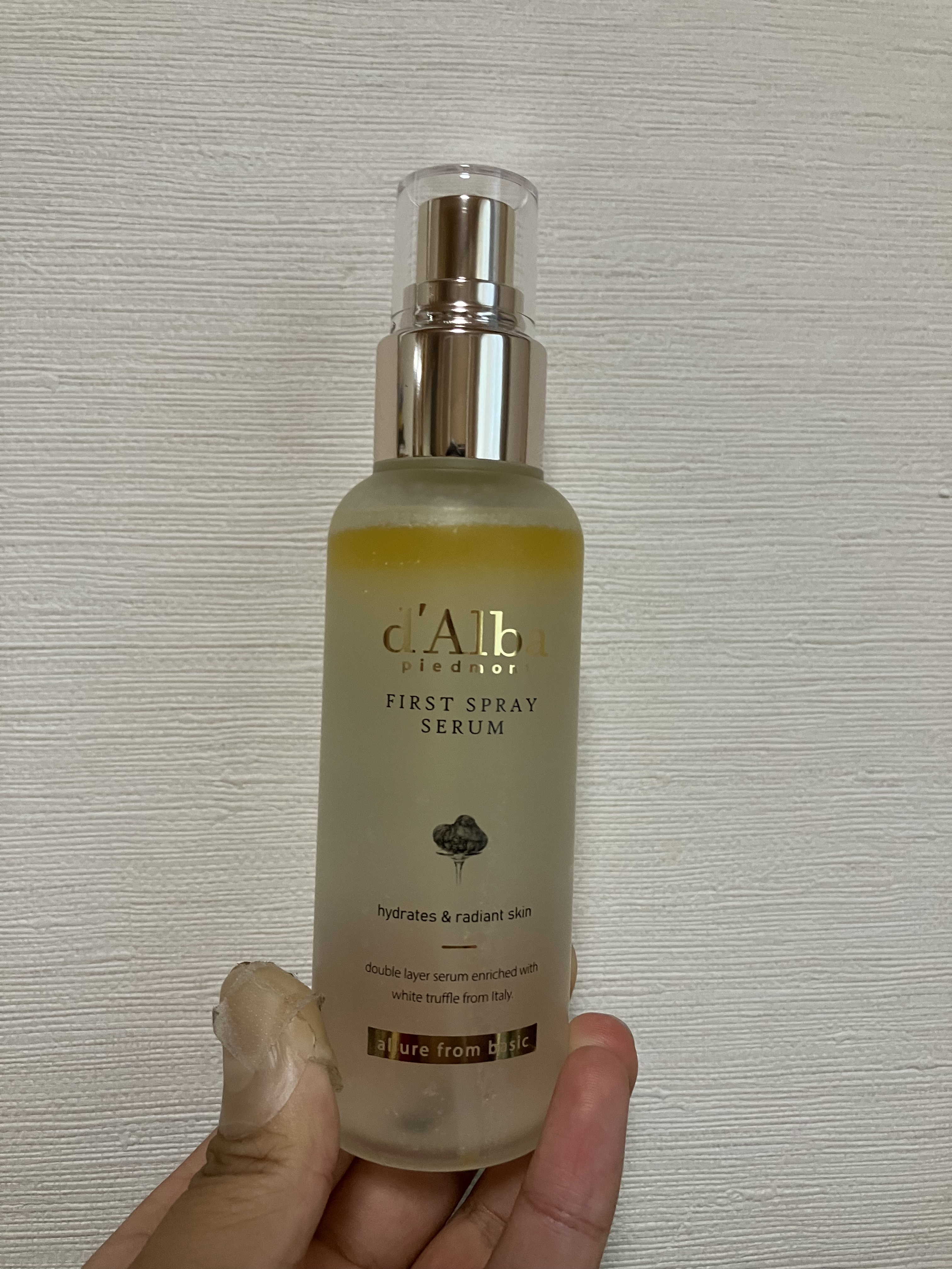 BeautyMeets企画でいただきました☘️ダルバホワイトトリュフ ファーストスプレーセラムです🧡スプレーの部分がゴールドで高級感があるボトルに入っています✨2層になっていて、上の方が黄色です。使う直前に振ってからスプレーしますよ。とっても...