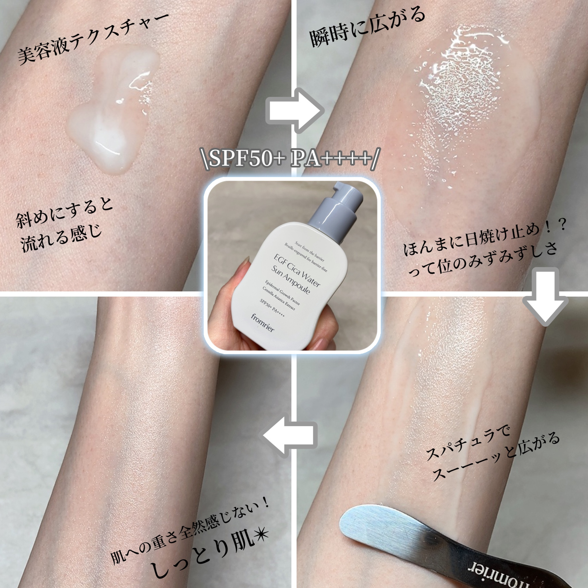 \スキンケアしながらUV対策/【fromrierEGFシカウォーターサンアンプル】☑️SPF50+/PA++++日焼け止め、スキンケア、美容液の機能を兼ね備えたUVケアアイテム✨整肌成分であるツボクサエキス(シカ)配合。無香料・白浮きなし、キ...