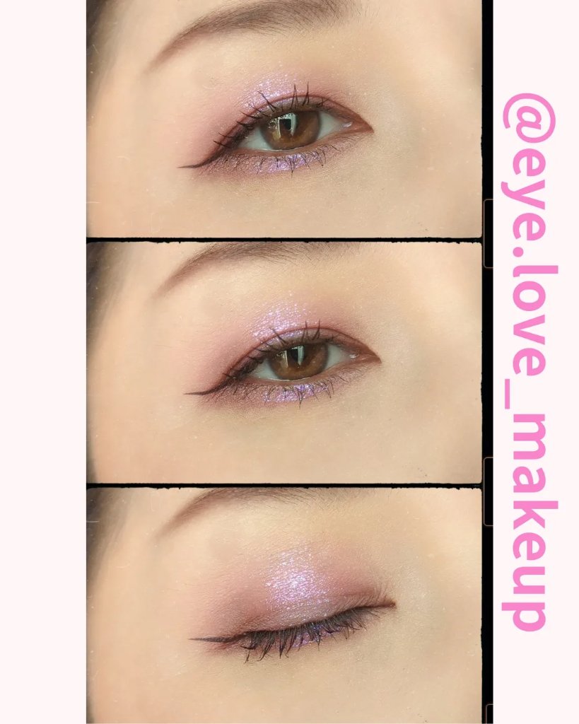 マットの発色をご覧ください。 マットでここまで発色するのって、珍しい。 特にパープル系のマットは、作るのが難しいらしく、ハイブランドでも発色がよくブレンドしやすいマットパープルを作るのに苦労するそう。 ですがこちらのaztkのマットパープルは、一塗りですんごい発色。 しっとりしているわけではないのですが、しっかり密着してくれる感じもします。 逆にパール系は少し発色優しめかな?と思いますが、ニュアンス的に使う分には問題なし。 ラメはギラギラのラメではなくチラチララメで、とっても上品。 いろんなシャドウと組み合わせて無限大にアイメイクが楽しめそうです。