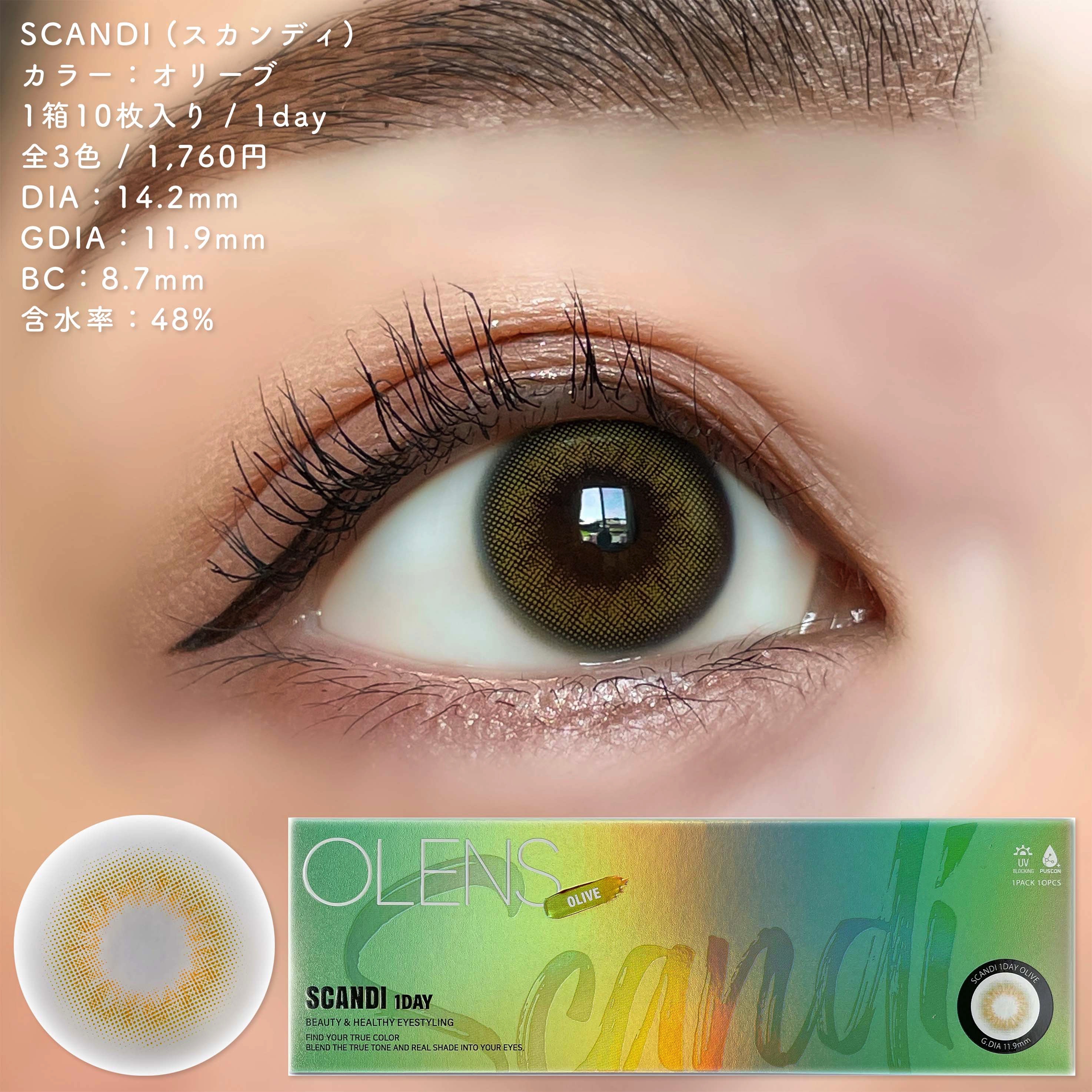 - ■OLENS SCANDI(オーレンズスカンディ) 韓国カラコン業界の話題のブランド『OLENS(オーレンズ)』の日本正式承認商品シリーズ。世界中から注目を浴びるグループ「NewJeans (ニュージーンズ)」がイメージモデル。スカンディは、リアルで繊細な虹彩パターンのデザインの、フチなしハーフ系カラコンシリーズで高発色だけど瞳に馴染みやすいカラーなので、誰でもスタイリッシュなリアルハーフ系瞳を演出しちゃいます! ■使い方 コンタクトレンズは高度管理医療機器です。必ず眼科医の処方に従って購入してください。 ■使用上の留意事項 コンタクトレンズは高度管理医療機器です。眼科医の指導に従い装用期間を厳守し、正しくお使いください。眼の定期検査を必ず受けてください。添付文書を必ず読み、取扱方法、装用時間を守って正しくお使いください。少しでも異常を感じたら、直ちに眼科医の検査を受けてください。
