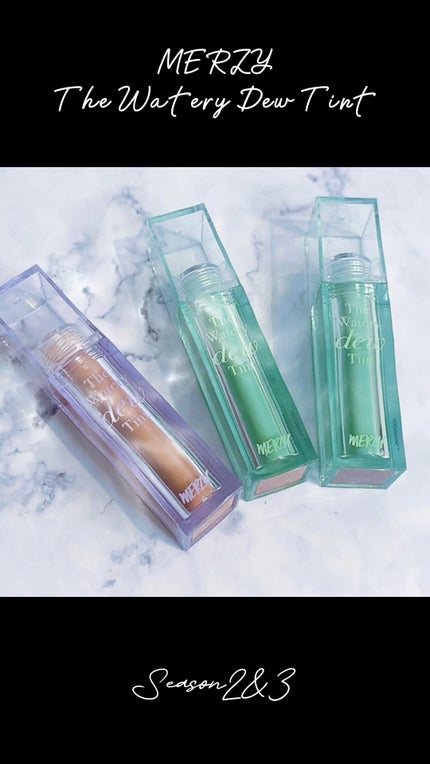 \程よいツヤ感🫧華やかな水光ティント💄/♡MERZYTheWaterydewTint色持ちがいいMERZYのちゅるんティント🩷ベタつかずさらっとしてるのに、ガラス玉みたいな光沢感がとっても綺麗🐰ひと塗りするだけでしっかり色づくし、ツヤツヤな唇...