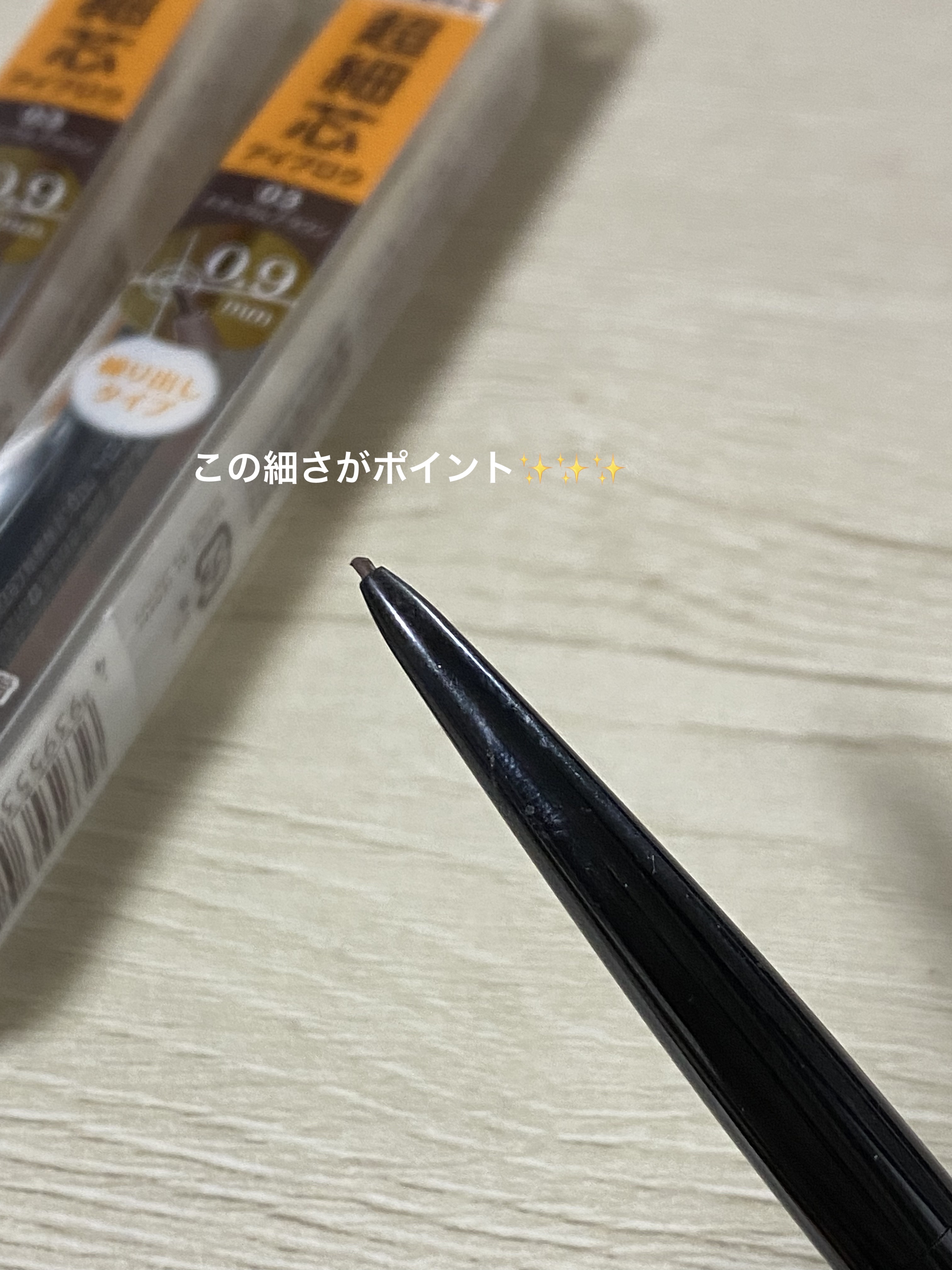超細芯アイブロウは、眉尻の1本1本まで繊細に描ける、0.9mmの超細芯アイブロウ。 力を入れなくてもしっかり描ける美発色。 パウダー成分80%配合。 1.5mm芯アイブロウ。こちらも削る手間がいらない繰り出しタイプ。 個人的には超細芯アイブロウより、細芯アイブロウNの方が使いやすいと感じでいますが、どちらもお値段がお安くコスパも良いので人気なのは納得の商品です。