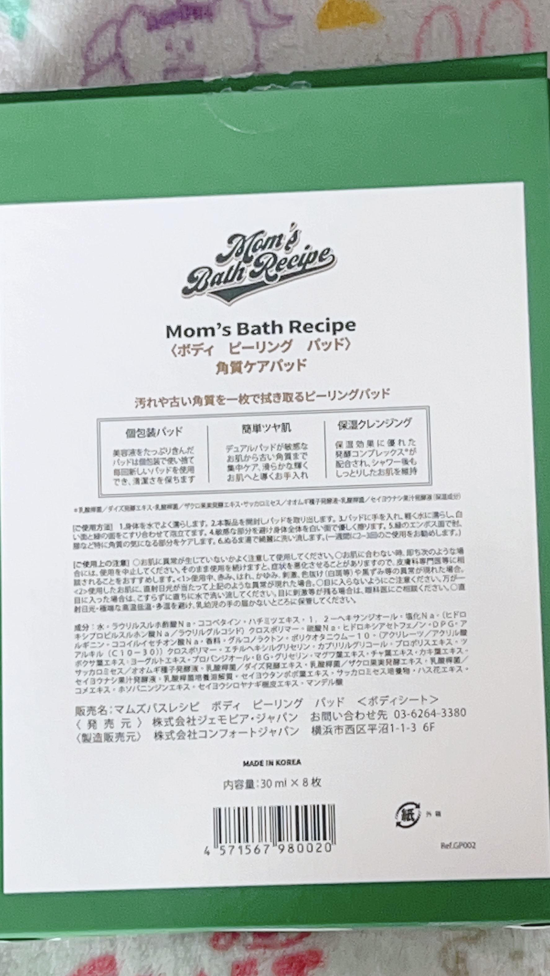 商品詳細情報Mom’s Bath Recipe ボディピーリングパッド