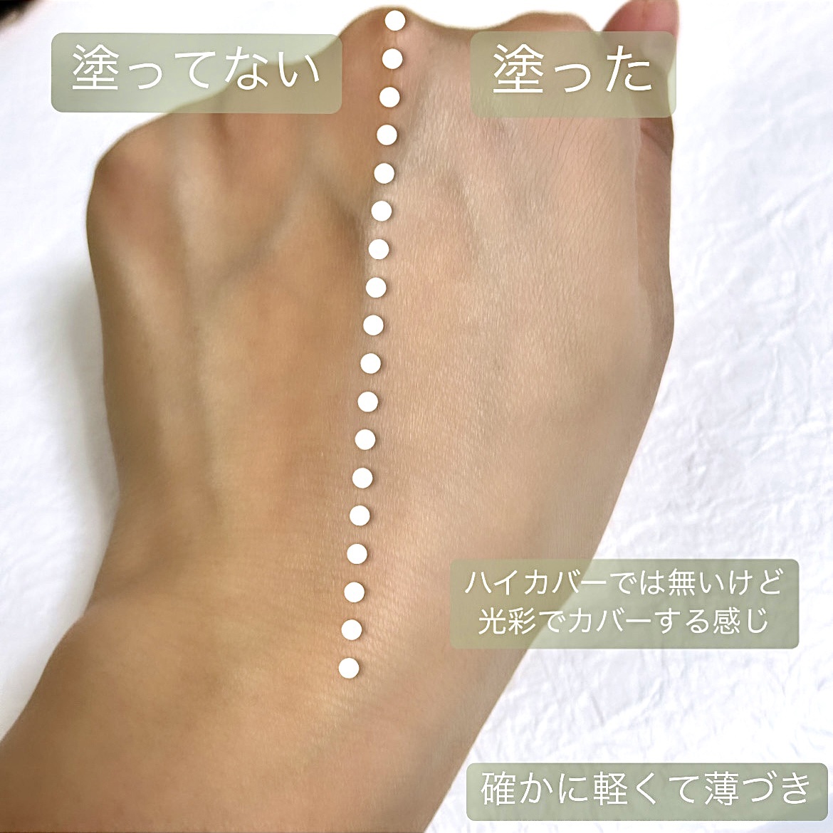 - 【01 PURE(ピンクベース20号〜21号)】 水、酸化チタン、酸化亜鉛、ホモサレート、シクロペンタシロキサン、イソドデカン、サリチル酸エチルヘキシル、メチルトリメチコン、グリセリン、ジヘプタン酸ネオペンチルグリコール、ラウリルポリグリセリル-3ポリジメチルシロキシエチルジメチコン、トリメチルシロキシケイ酸、ナイアシンアミド、(VP/ヘキサデセン)コポリマー、ポリリシノレイン酸ポリグリセリル-5、BG、シリカ、ポリグリセリル-3ポリジメチルシロキシエチルジメチコン、(ビスヒドロキシプロピルジメチコン/SMDI)コポリマー、1,2-ヘキサンジオール、酸化鉄、硫酸Mg、水酸化Al、ステアリン酸、ハマメリスエキス、ジステアルジモニウムヘクトライト、カプリル酸グリセリル、カプリリルグリコール、ラウロイルリシン、トリエトキシカプリリルシラン、合成フルオロフロゴパイト、香料、エチルヘキシルグリセリン、アルミナ、ジメチコン、アデノシン、ステアリルジメチコン、トコフェロール、DPG、コメヌカ油、加水分解ヒアルロン酸、ペンチレングリコール、マルトデキストリン、加水分解野菜タンパク、ヤマザクラ花エキス、ツボクサエキス、シロキクラゲエキス、ミズハッカエキス 【02 NATURAL(ニュートラルベース21号)】 水、酸化チタン、酸化亜鉛、ホモサレート、シクロペンタシロキサン、イソドデカン、サリチル酸エチルヘキシル、メチルトリメチコン、グリセリン、ジヘプタン酸ネオペンチルグリコール、ラウリルポリグリセリル-3ポリジメチルシロキシエチルジメチコン、トリメチルシロキシケイ酸、ナイアシンアミド、(VP/ヘキサデセン)コポリマー、ポリリシノレイン酸ポリグリセリル-5、BG、シリカ、ポリグリセリル-3ポリジメチルシロキシエチルジメチコン、(ビスヒドロキシプロピルジメチコン/SMDI)コポリマー、1,2-ヘキサンジオール、酸化鉄、硫酸Mg、水酸化Al、ステアリン酸、ハマメリスエキス、ジステアルジモニウムヘクトライト、カプリル酸グリセリル、カプリリルグリコール、ラウロイルリシン、トリエトキシカプリリルシラン、合成フルオロフロゴパイト、香料、エチルヘキシルグリセリン、アルミナ、ジメチコン、アデノシン、ステアリルジメチコン、トコフェロール、DPG、コメヌカ油、加水分解ヒアルロン酸、ペンチレングリコール、マルトデキストリン、加水分解野菜タンパク、ヤマザクラ花エキス、ツボクサエキス、シロキクラゲエキス、ミズハッカエキス 【03 BEIGE(ベージュベース23号)】 水、酸化チタン、酸化亜鉛、ホモサレート、シクロペンタシロキサン、イソドデカン、サリチル酸エチルヘキシル、メチルトリメチコン、グリセリン、ジヘプタン酸ネオペンチルグリコール、ラウリルポリグリセリル-3ポリジメチルシロキシエチルジメチコン、トリメチルシロキシケイ酸、ナイアシンアミド、(VP/ヘキサデセン)コポリマー、ポリリシノレイン酸ポリグリセリル-5、BG、シリカ、ポリグリセリル-3ポリジメチルシロキシエチルジメチコン、(ビスヒドロキシプロピルジメチコン/SMDI)コポリマー、1,2-ヘキサンジオール、酸化鉄、硫酸Mg、水酸化Al、ステアリン酸、ハマメリスエキス、ジステアルジモニウムヘクトライト、カプリル酸グリセリル、カプリリルグリコール、ラウロイルリシン、トリエトキシカプリリルシラン、合成フルオロフロゴパイト、香料、エチルヘキシルグリセリン、アルミナ、ジメチコン、アデノシン、ステアリルジメチコン、トコフェロール、DPG、コメヌカ油、加水分解ヒアルロン酸、ペンチレングリコール、マルトデキストリン、加水分解野菜タンパク、ヤマザクラ花エキス、ツボクサエキス、シロキクラゲエキス、ミズハッカエキス