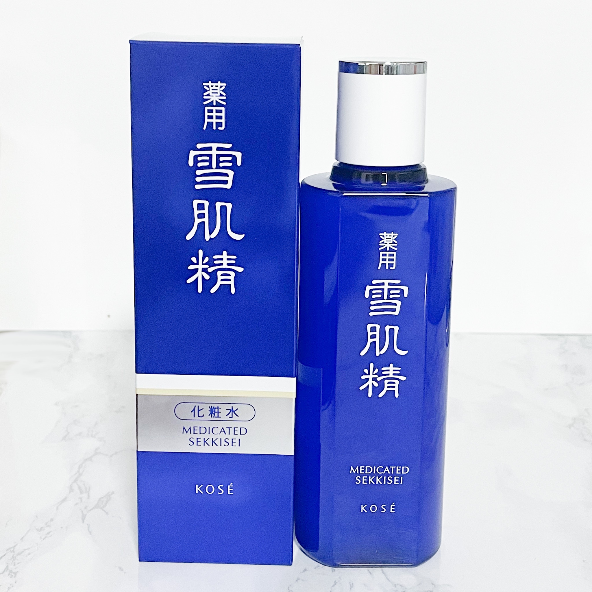 KOSE 雪肌精 薬用化粧水200mlブライトニングエッセンスローション 医学部外品こちら奮発して購入しました!!✨深い青色の上品なパッケージ。中身はパッケージと同じ色のボトルに白色の蓋。デザインだけでも惹かれます✨そして蓋の表面は、鏡になっ...