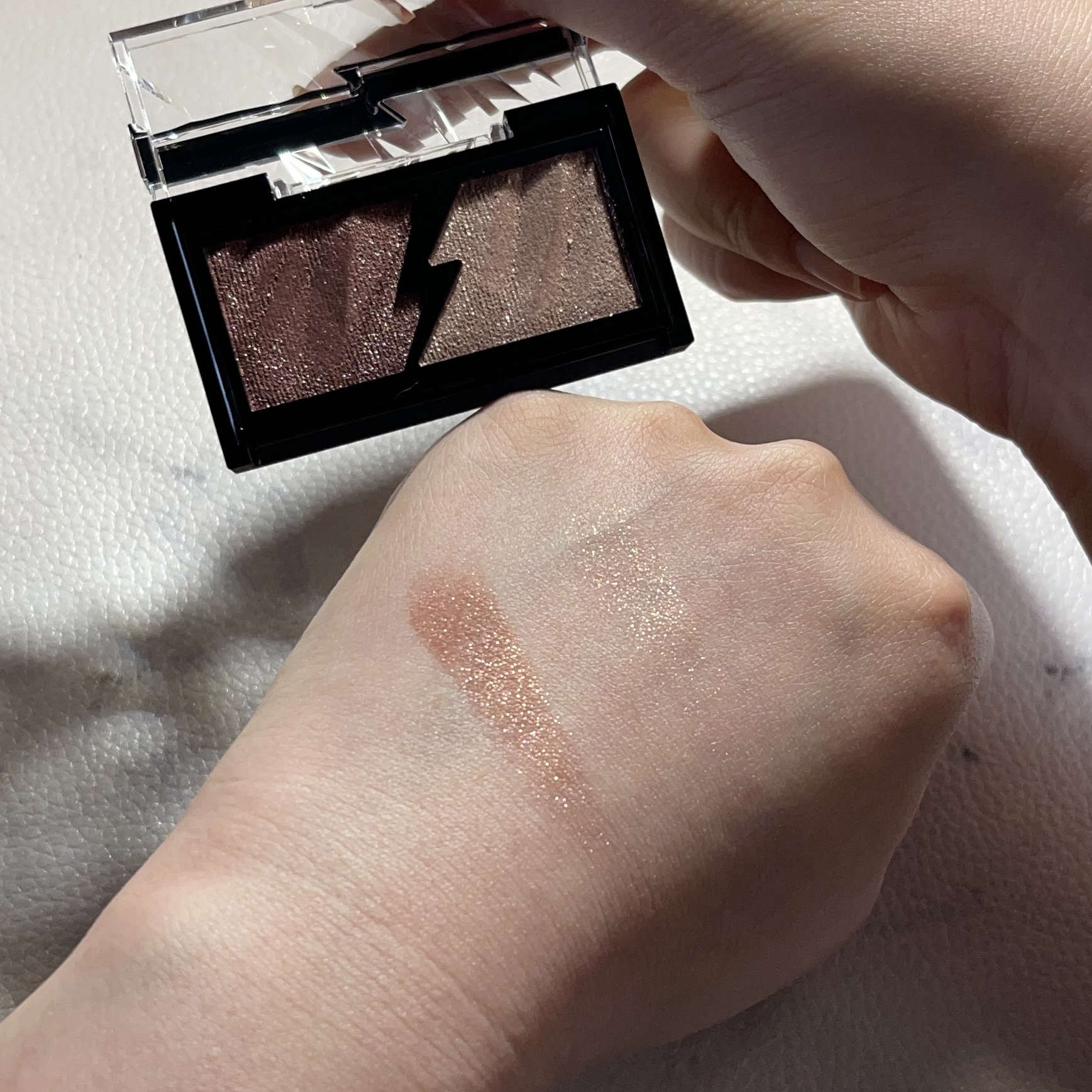 - 質感の違う2つの輝きで火花がクラッシュしたような発光感のある目元印象をつくるアイシャドウ。 まぶたにピタッと密着して、大粒ラメも落ちにくい処方設計。 繊細なカラーパールがきらめくエレクトリカルカラーと存在感のある大粒グリッターでまぶしい輝きを演出するフラッシュグリッターの2つの質感を掛け合わせて、輝き自由自在。 目元以外にも頬や鼻筋のハイライトに使える。