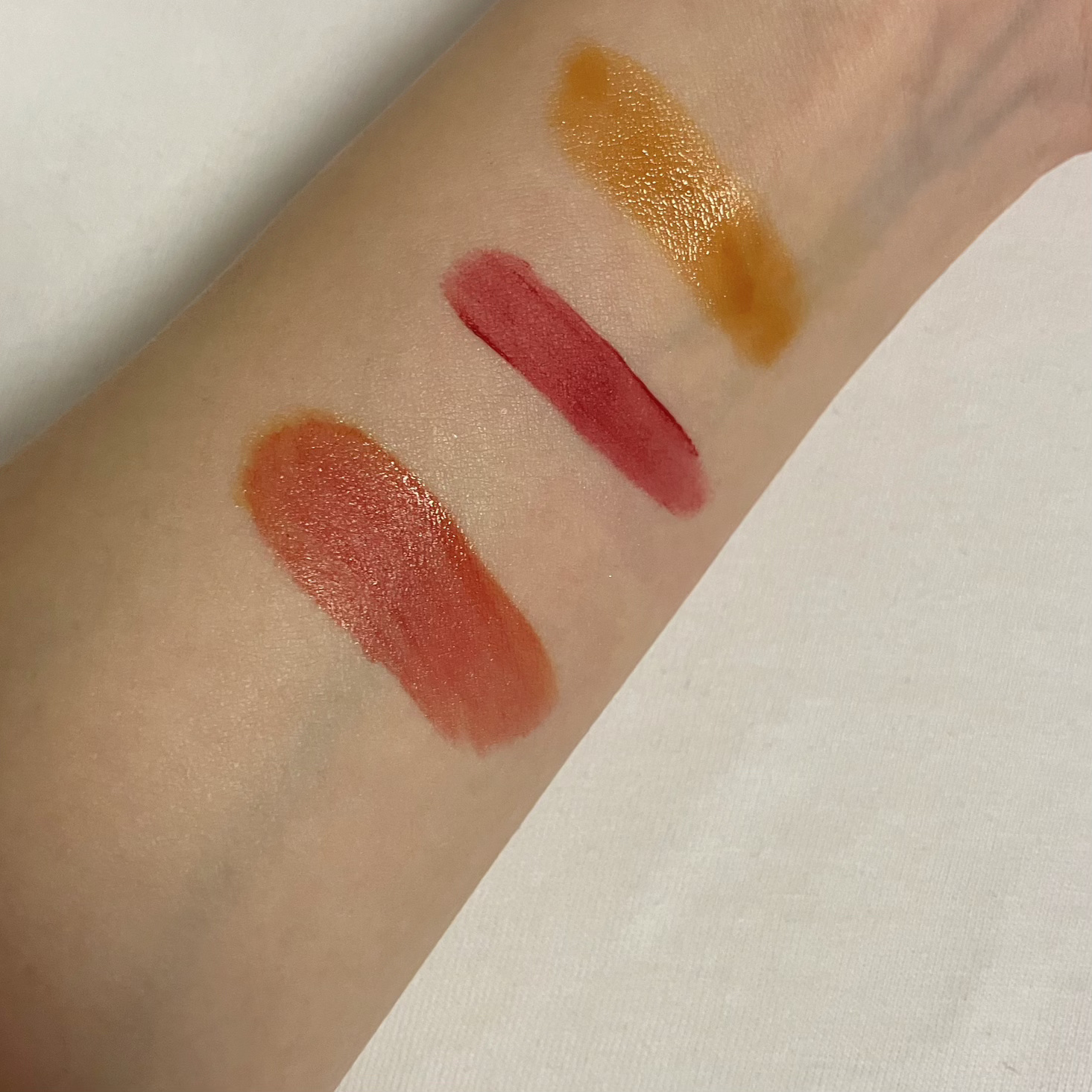 赤みも青みもない、1番純粋なベージュカラー。写真では伝わらないかもしれないけど、ちゃんとリップクリームのようなツヤ感はあります🙆🏻♀️ かなり昔からあるシリーズのベージュ系。少しオレンジがかった色味。ティントじゃないのに何故か色持ちがいいとずっと話題になってます👏🏻 こちらもCEZANNE。上記よりツヤ感がかなり有り、ツヤツヤになります✨️リップクリーム感覚で塗れる!