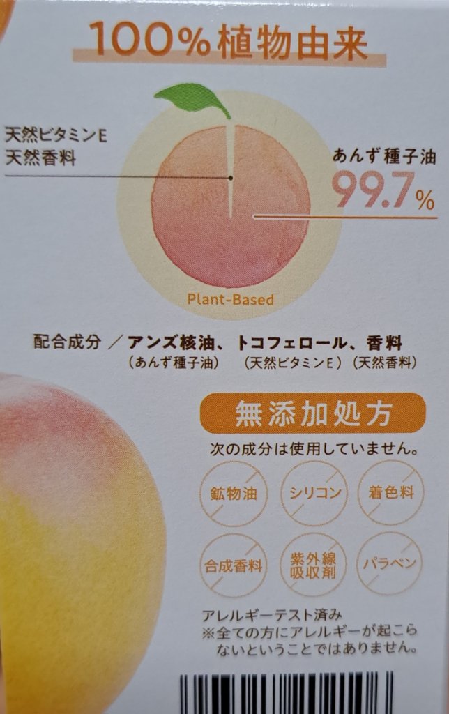 - <63ml> アンズ核油、トコフェロール、香料(天然香料) <30ml> アンズ核油、トコフェロール、香料(天然香料)