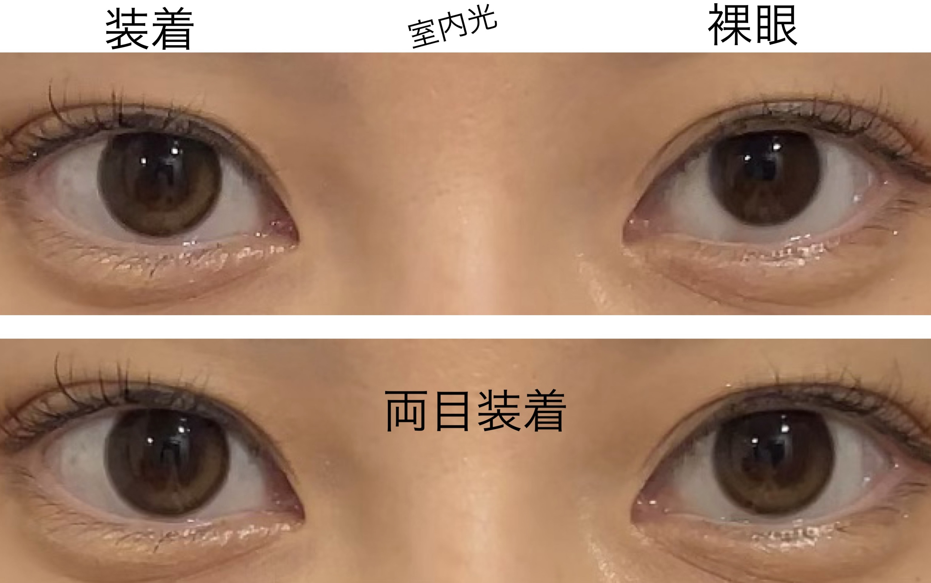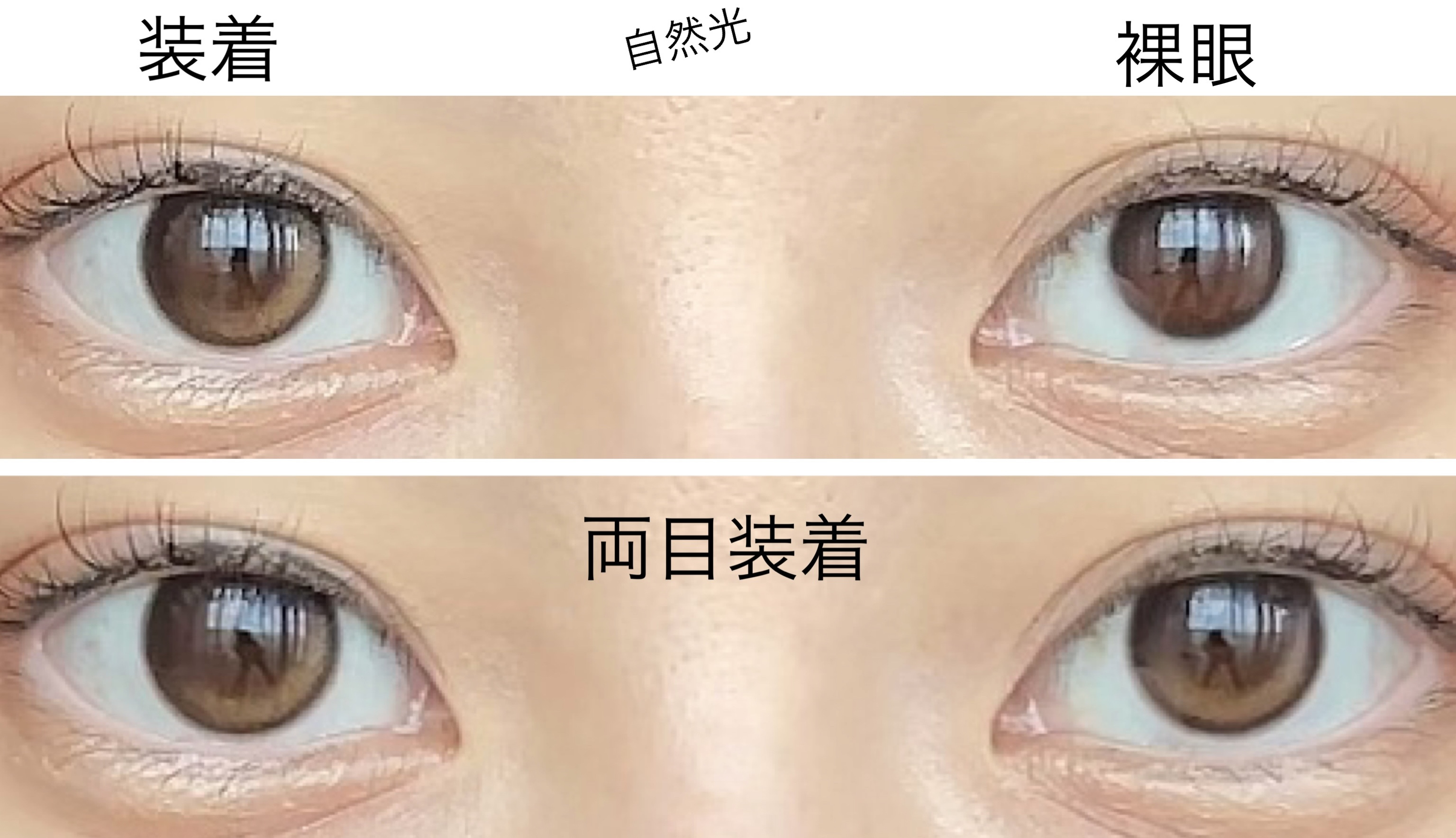 中の本当にココアみたいなくすみブラウンカラーが他には無い感じでじゅわーっとした発色が最高ですね 中のカラーが明るめでリング状になってると結構派手な感じになりやすいんですが、このじゅわっとした感じのおかげでそこまで派手だったりキツくは見えないです きゅるっと丸い目に見えて本当に可愛らしい印象になりつつ立体感がしっかり出て、写真盛れも現実盛れも間違いない気がします